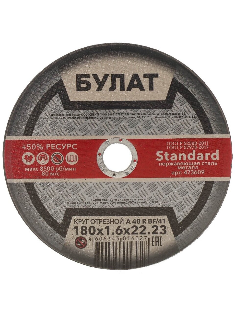 Вы можете приобрести «Круг отрезной по металлу, Булат, BF, диаметр 180х1.6 мм, посадочный диаметр 22.23 мм, зернистость A40, тип 41, R 80 м/с» и другие товары в нашем интернет-магазине в Нижнем Новгороде по низким ценам и с бесплатным самовывозом.