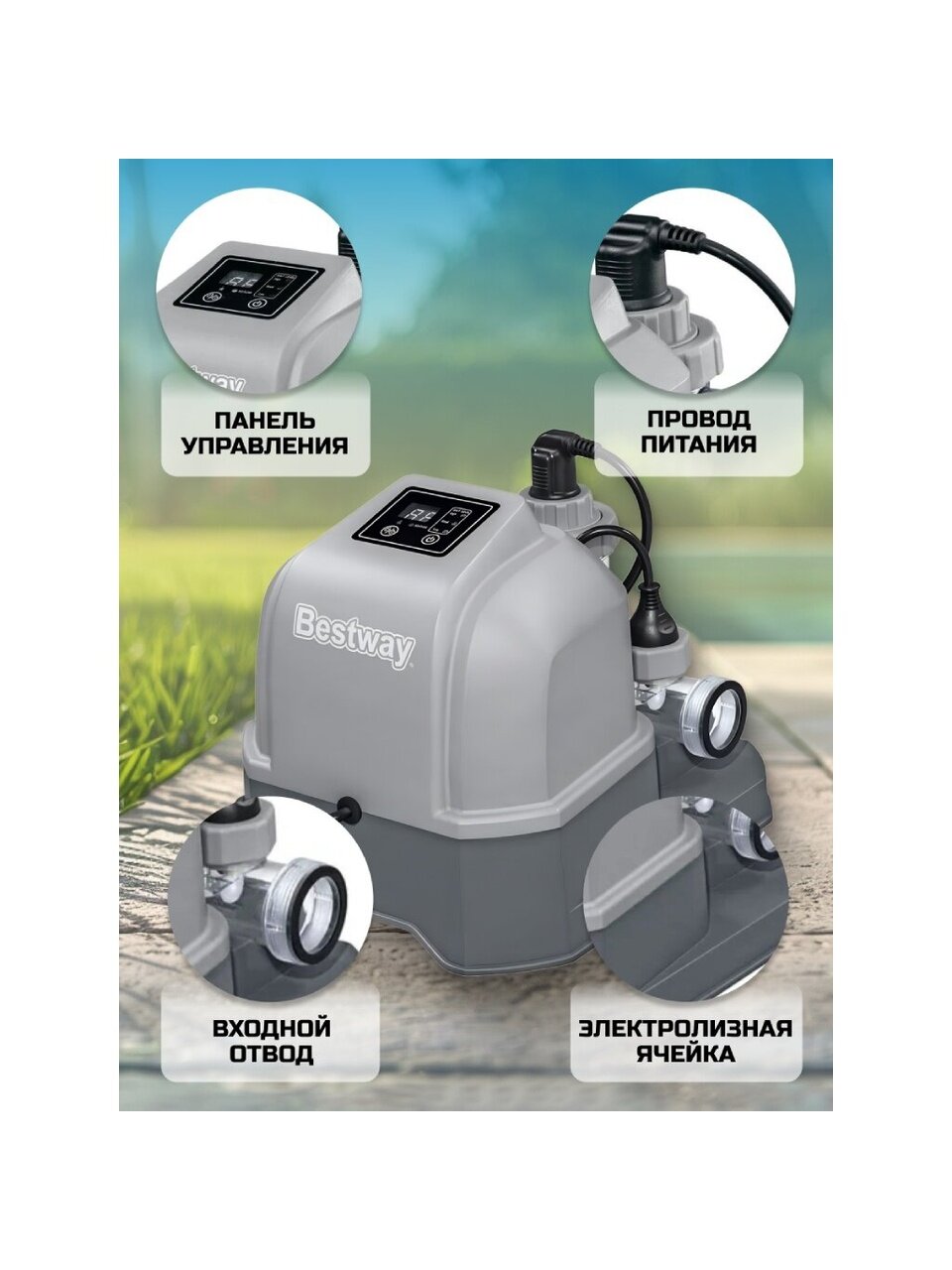 Хлоргенератор Bestway 58678 — это идеальное решение для тех, кто хочет наслаждаться чистой и безопасной водой в своем бассейне, не затрачивая много времени и усилий на обслуживание. Устройство эффективно справляется с задачей дезинфекции, обеспечивая вам и вашим близким комфортное и безопасное купание. Вложение в это оборудование — это инвестиция в здоровье и безопасность, а также в экономию времени и ресурсов. Наслаждайтесь каждым моментом, проведенным у бассейна, не беспокоясь о качестве воды!