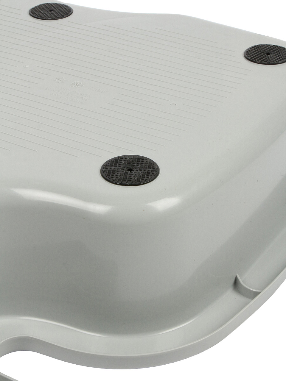 Ванночка имеет размеры 56 см в длину, 46 см в ширину и 9 см в высоту. Этого достаточно для комфортного использования взрослыми и детьми.