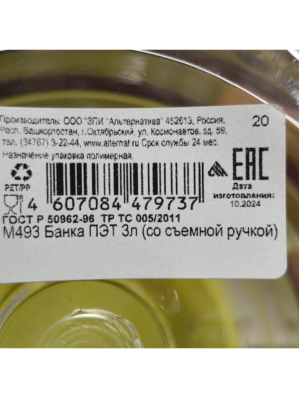 Пэт-банка - это идеальная тара для длительного хранения и транспортировки как сыпучих продуктов, так и питьевых жидкостей. Завинчивающаяся крышка надёжно защищает содержимое от распространения запахов, случайного проникновения влаги, расплёскивания при транспортировке. Съёмная ручка делает комфортным перемещение ёмкости. Очень удобно возить в такой таре родниковую воду. Изделие изготавливается из качественного пластика, безопасного для контакта с пищевыми продуктами. Благодаря широкой горловине такую банку легко мыть изнутри.