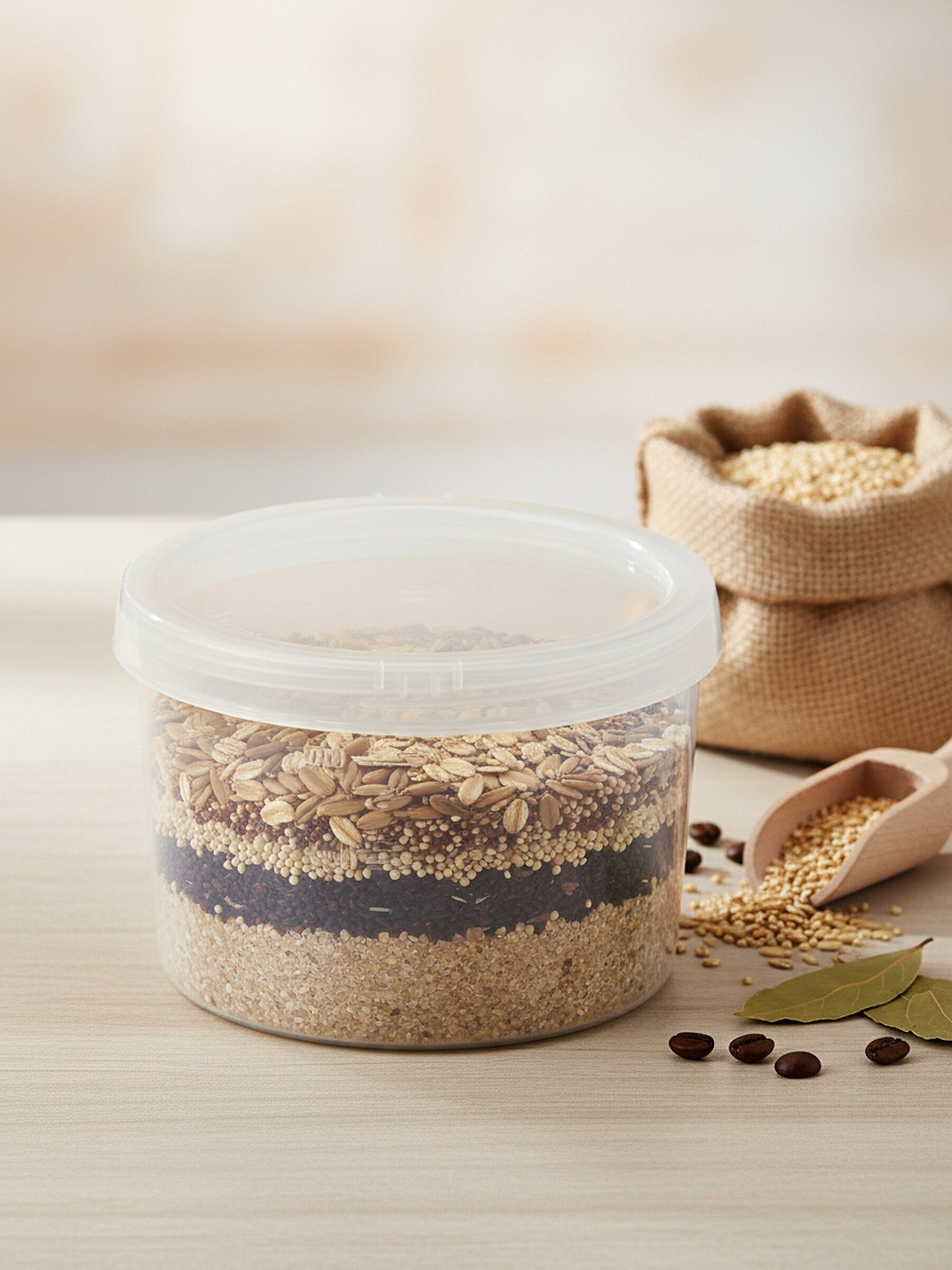 - Герметичная закручивающаяся крышка — свежесть продуктов и защита от влаги, насекомых.