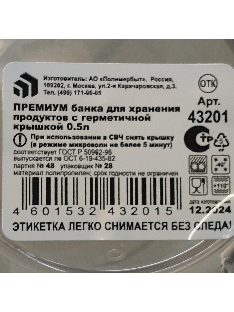 Откройте для себя удобство и практичность с банкой для сыпучих продуктов от бренда Полимербыт. Эта пластиковая емкость высотой 9.5 см, диаметром 10 см и объемом 0.5 л идеально подходит для хранения различных сыпучих ингредиентов, обеспечивая их свежесть благодаря закручивающейся крышке.