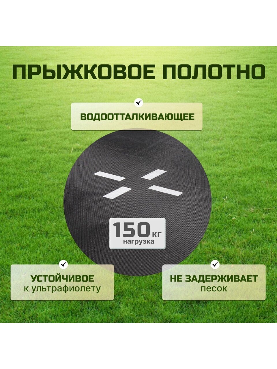 Полновесная рама из качественных комплектующих, защитная сеть снабжена прямым креплением к прыжковому полотну и дополнительной защитой входа. Увлекательный, полезный и, главное, безопасный тренажер для всей семьи. Верхняя защитная сеть оберегает от падений. Использование кронштейнов увеличивает устойчивость и исключает падение батута при установке на мягком грунте. Качественные материалы и мощная рама предусматривают эксплуатацию батута пользователями до 150 кг.