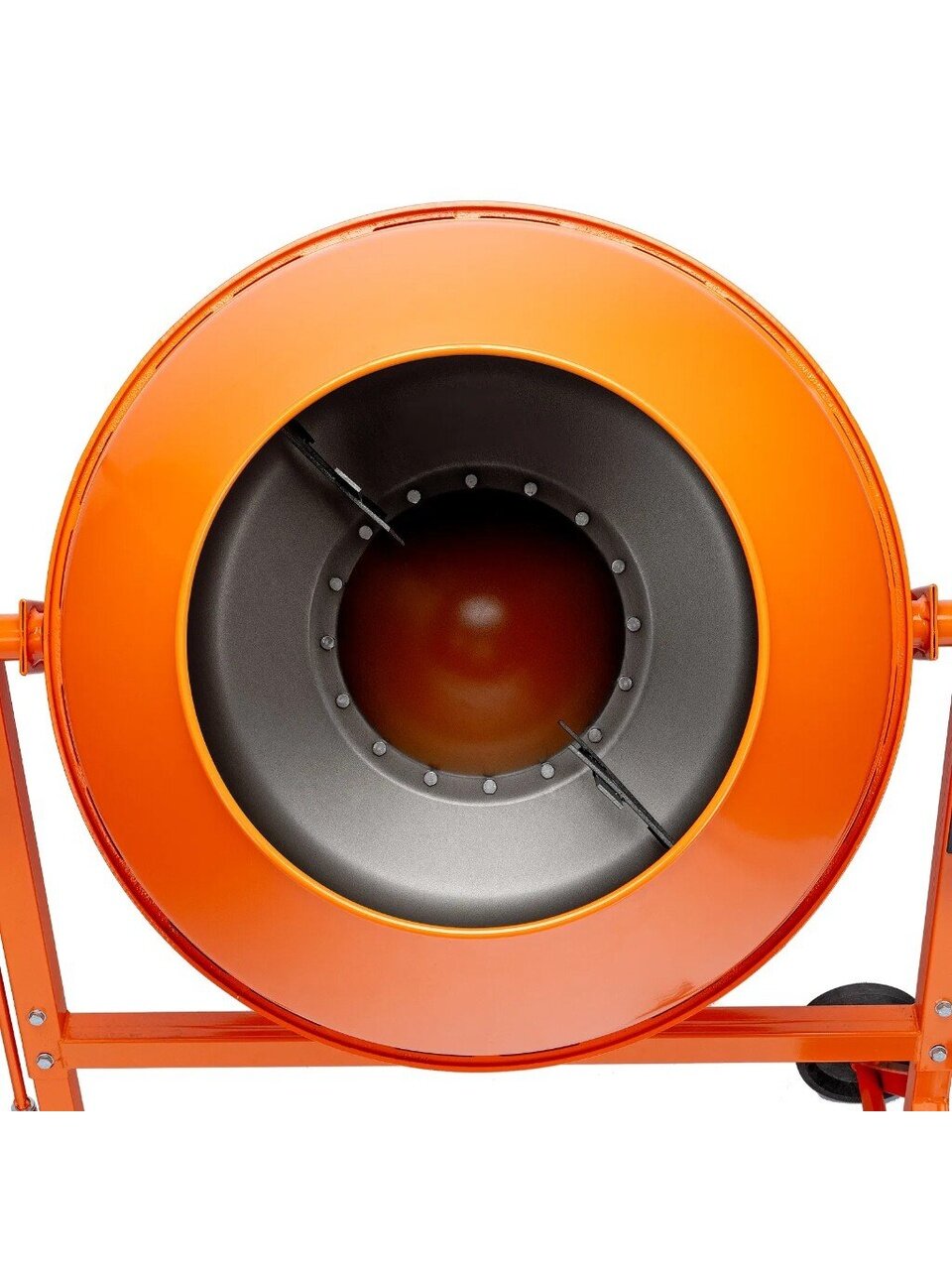 - Простая загрузка и выгрузка смеси: благодаря возможности наклона барабана с помощью маховика и легкой фиксации в нужном положении, процесс работы становится более удобным и эффективным.