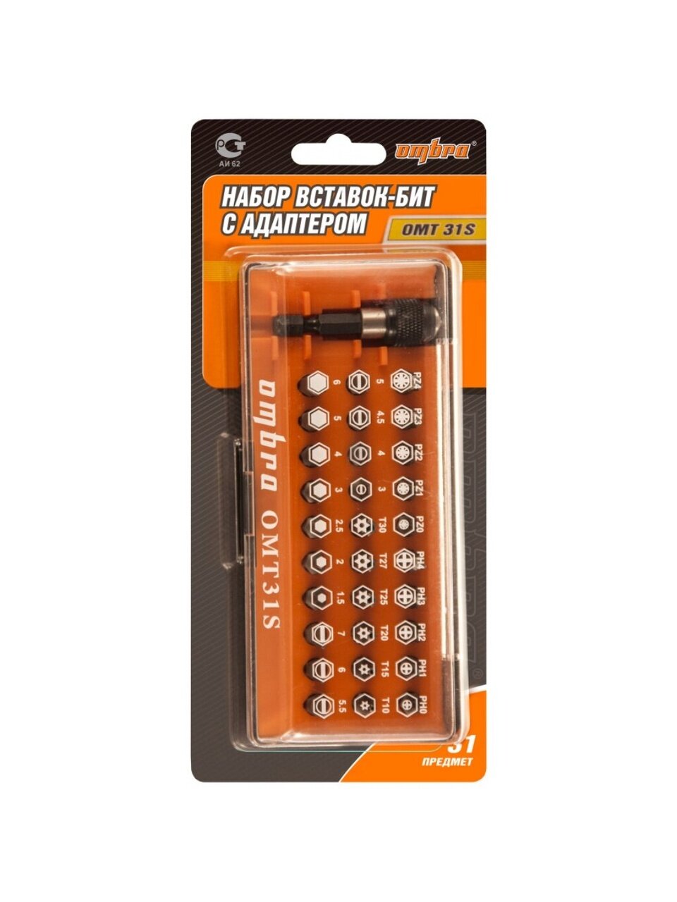 Набор бит с адаптером OMT31S Ombra. В наборе собраны биты-вставки, различающиеся по рабочему профилю и предназначенные для проведения монтажных работ с торцевыми головками и другим инструментом. Комфорт при использовании набора достигается за счет разнообразия вставок, которые позволяют работать с крепежом самого разного профиля. Адаптер для бит оснащен фиксатором, что немаловажно при работе с крепежом. Удобство при хранении обеспечивает пластиковый кейс, в котором каждая насадка будет на своем месте, за счет чего можно быстро найти нужный инструмент.