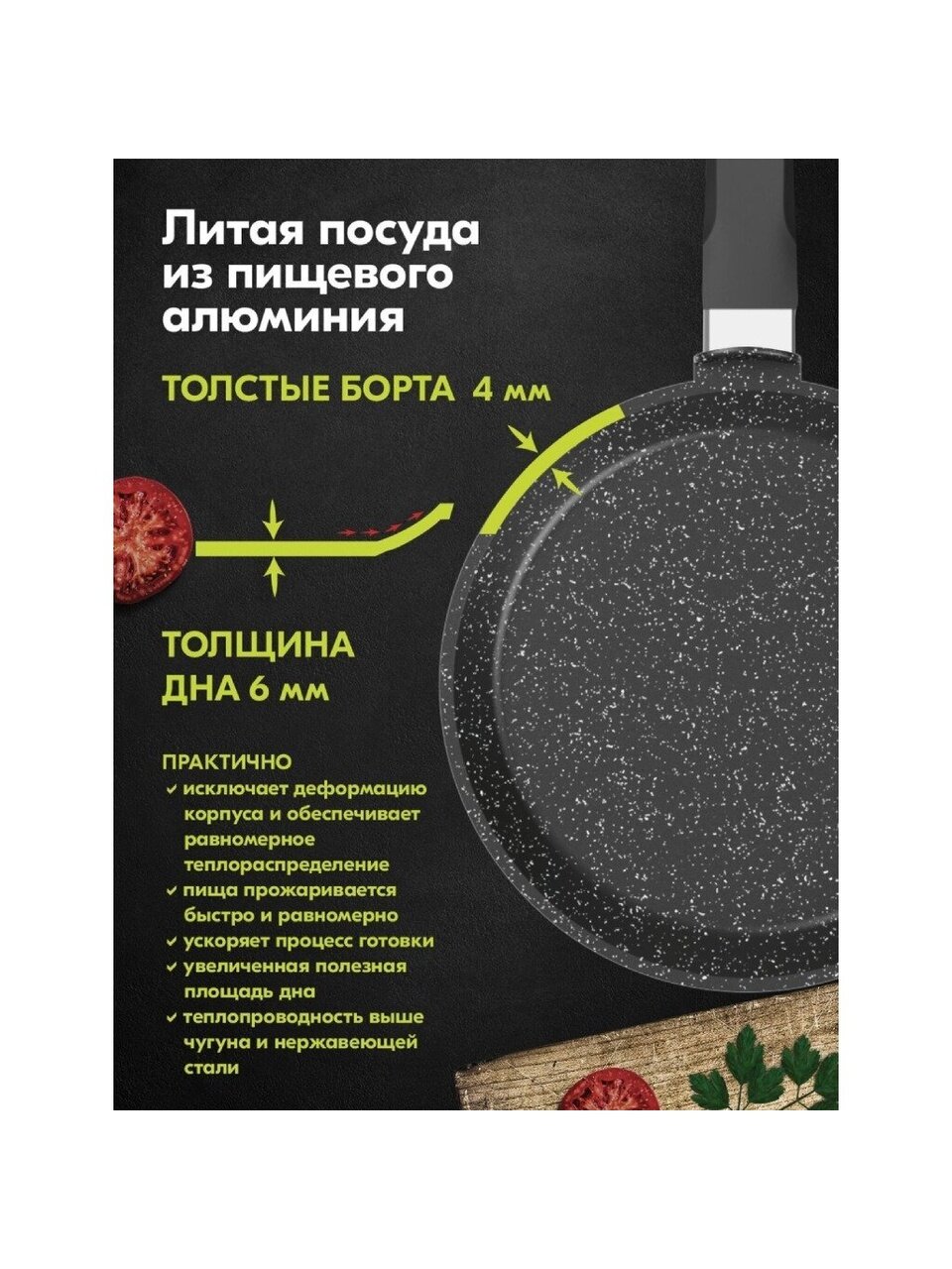 - Диаметр сковороды: 24 см.