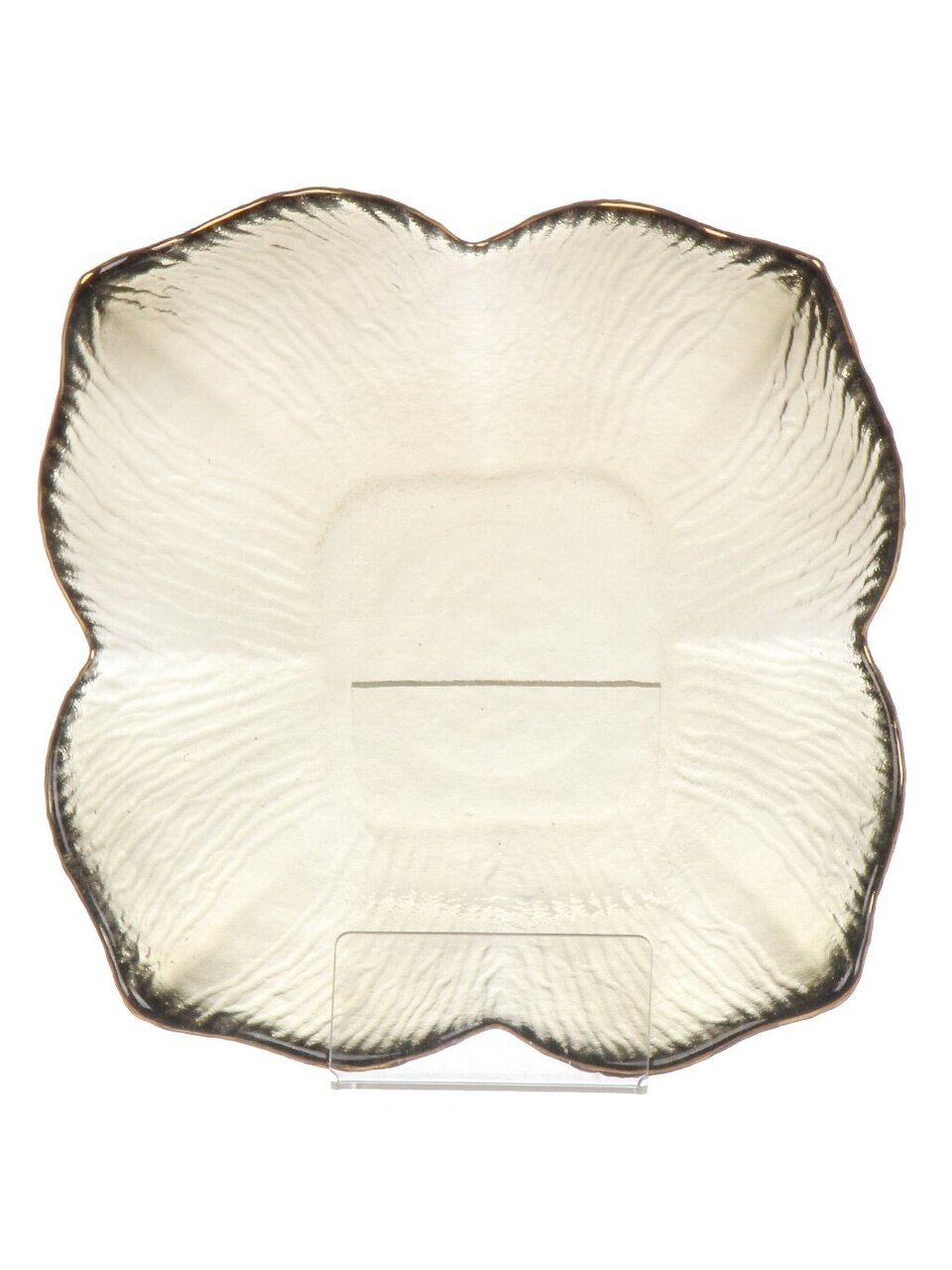 Погрузитесь в атмосферу утонченной элегантности с блюдом из стекла, украшенным изысканной золотой отводкой. Это фигурное блюдо станет идеальным акцентом на вашем столе, добавив нотку роскоши в каждое ваше блюдо.