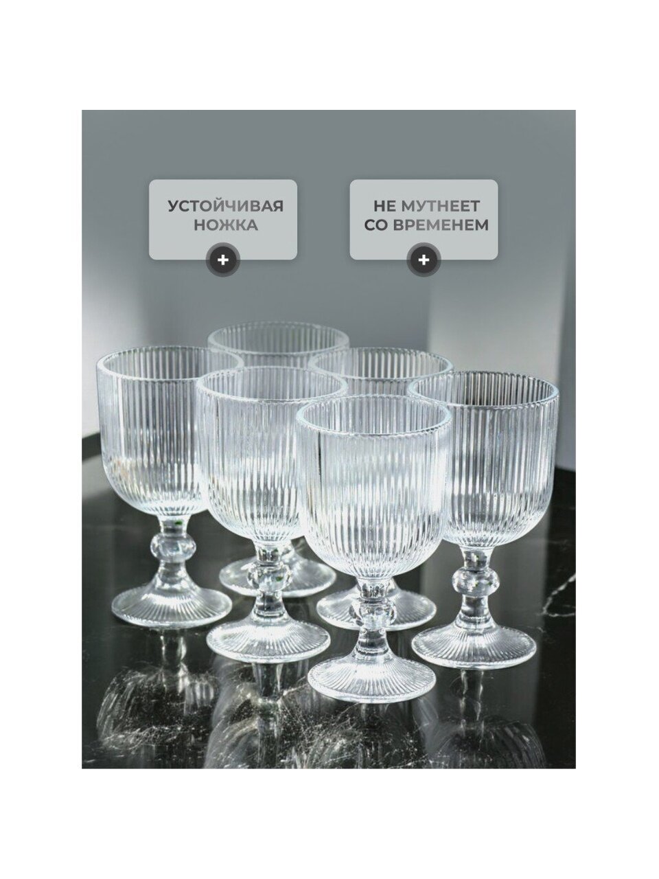 Бокалы для вина Daniks Грани 350 мл, 6 шт: стильный набор для сервировки и подарка. Прессованное стекло, рельефный дизайн, выгодная цена — выбор для ценителей!