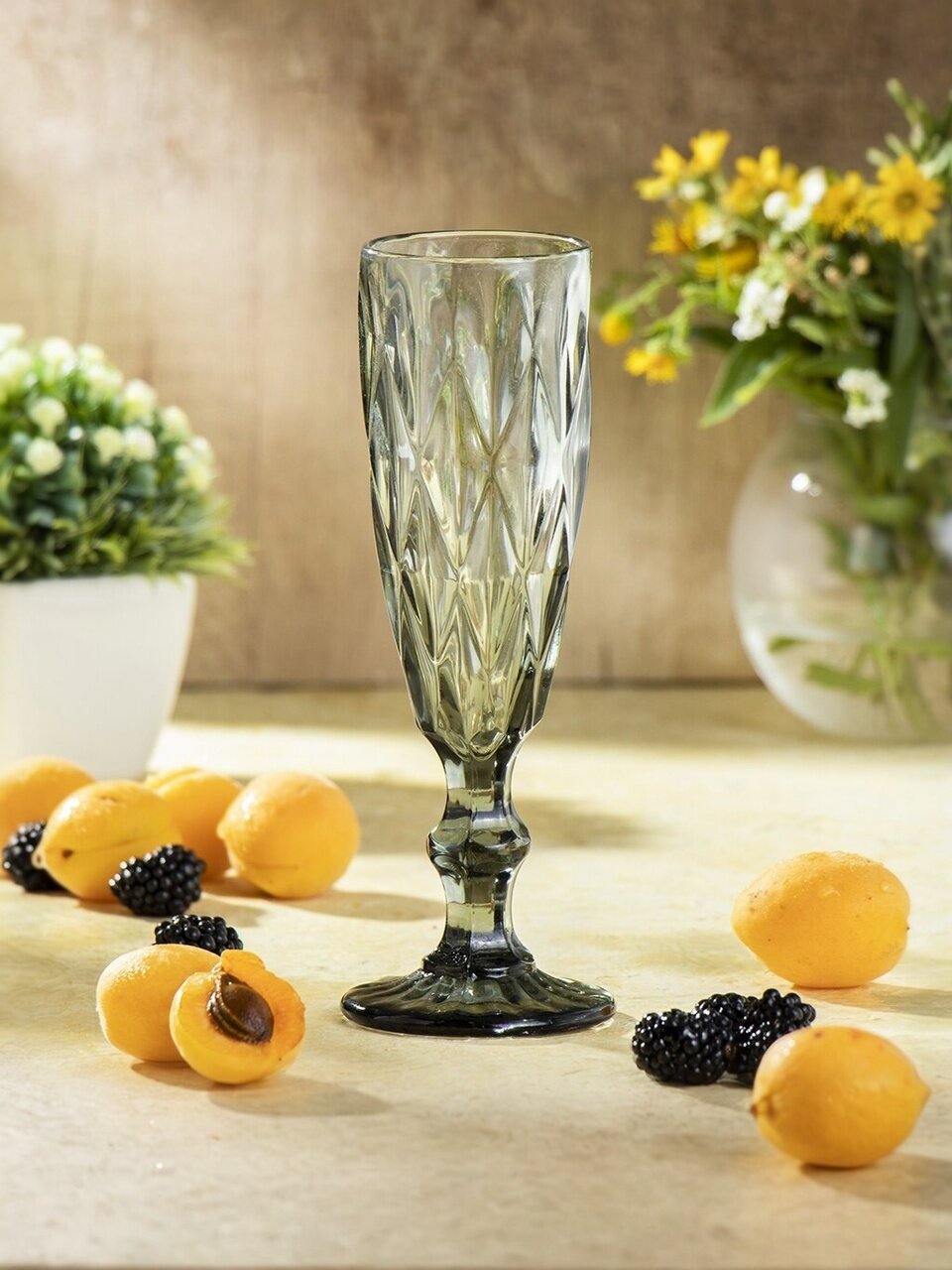 Бокал для шампанского 230 мл «Малахит» — стильный акцент для вашего стола: рельефное стекло, оригинальный дизайн, идеален для подарка и уютных встреч.