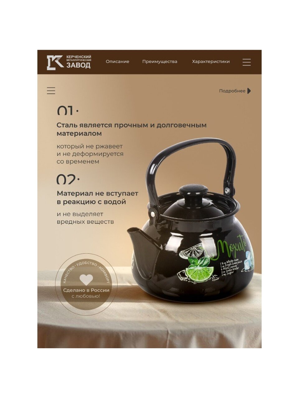 Вы можете приобрести «Чайник сталь, эмалированное покрытие, 3 л, ручка металлическая, Керченский металлургический завод, Мохито, черный, 42115-123/6-У4» и другие товары в нашем интернет-магазине в Смоленске по низким ценам и с бесплатным самовывозом.