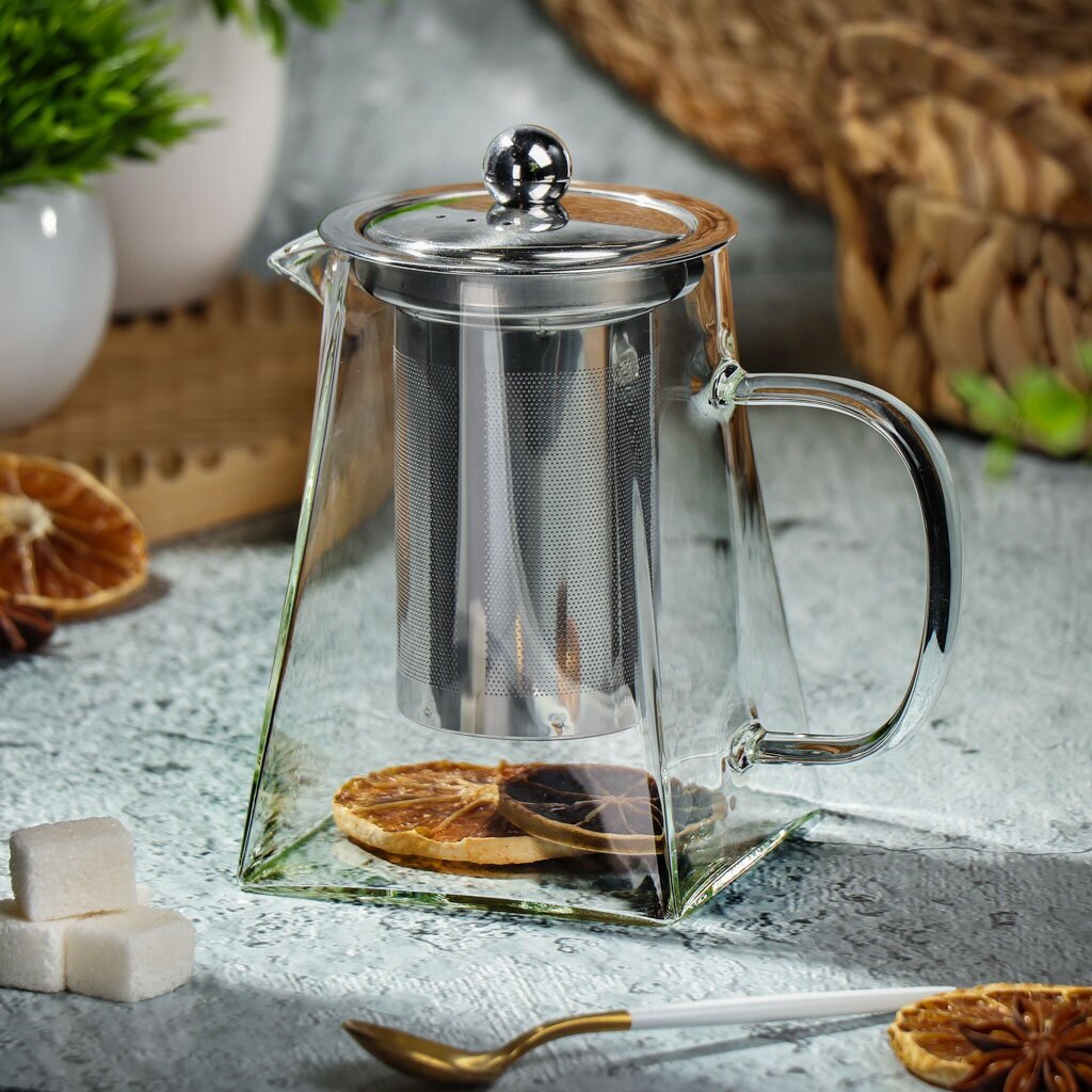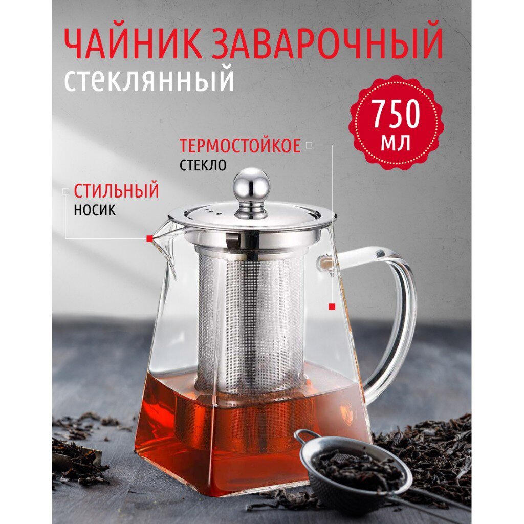 Чайник заварочный стекло, 0.75 л, с ситечком, Daniks