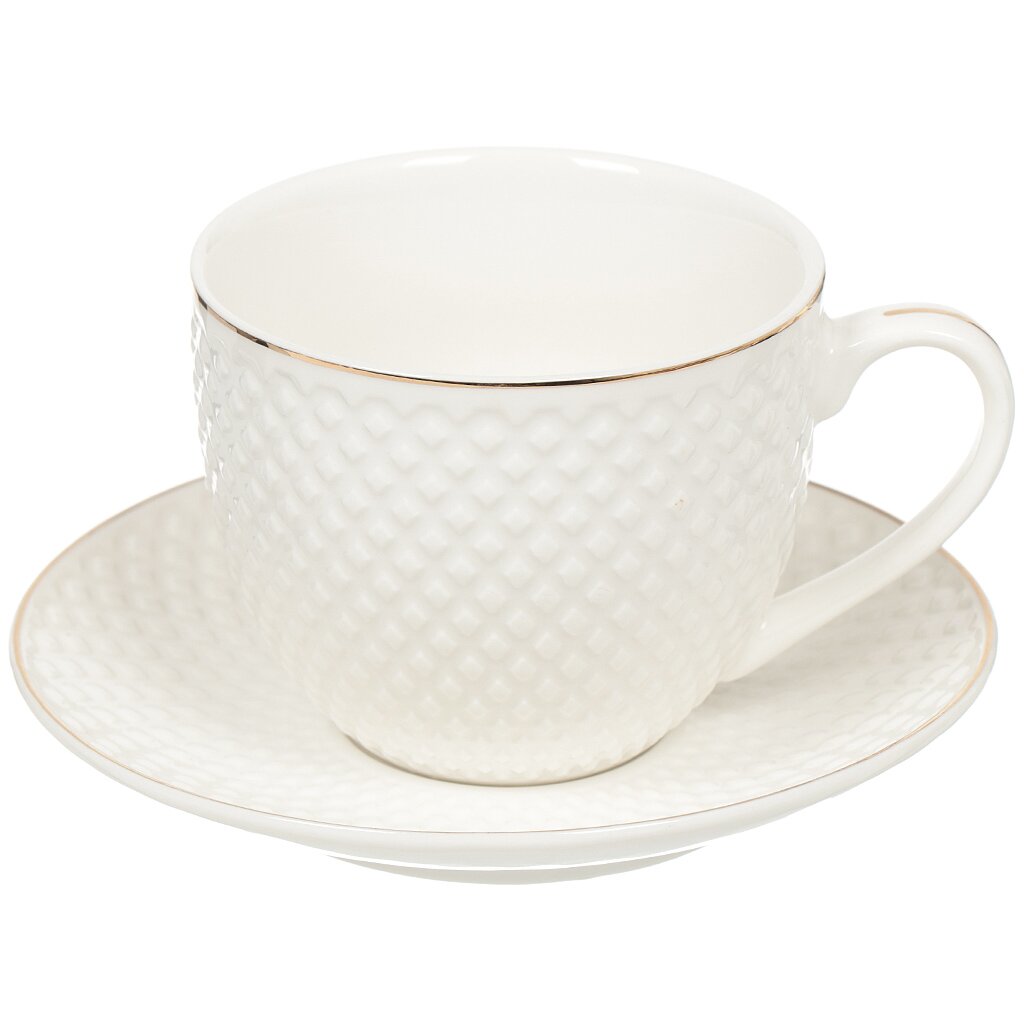 Чайная пара порадует хозяев и их гостей своим элегантным исполнением в чисто британском стиле. Модель выгодно отличается легкостью и совершенством форм. Белый высококачественный фарфор придает изделию воздушности и подчеркивает изысканный вкус владельца. Эта чайная пара станет настоящим украшением любого чаепития, доставляя массу положительных эмоций окружающим. Изделие также может стать замечательным подарком друзьям и близким.