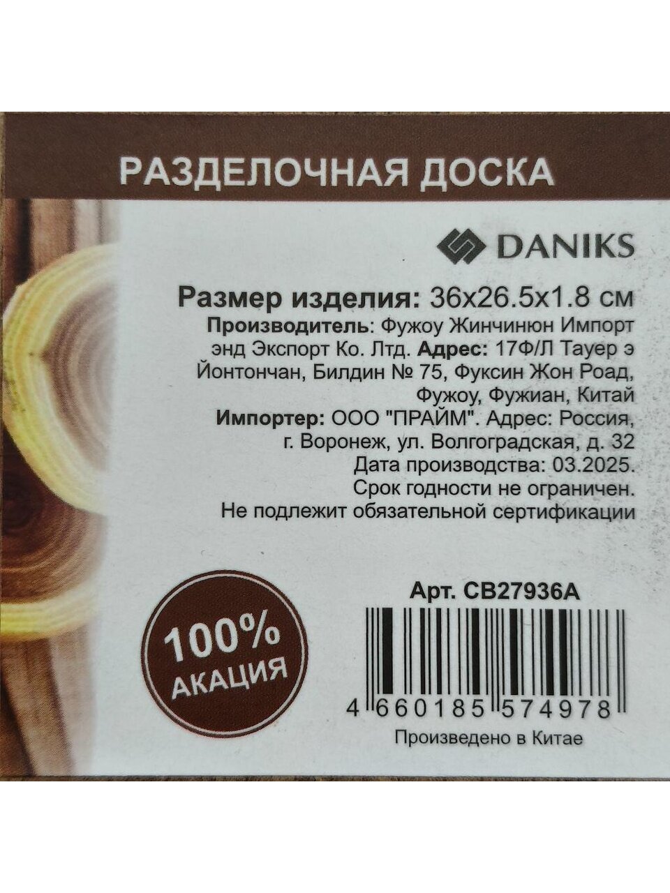 Вы можете приобрести «Доска разделочная акация, 36х26.5х1.8 см, с ручкой, прямоугольная, Daniks, CB27936A» и другие товары в нашем интернет-магазине в Ярославле по низким ценам и с бесплатным самовывозом.