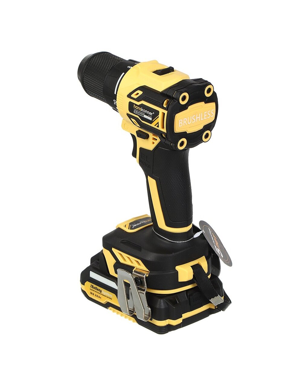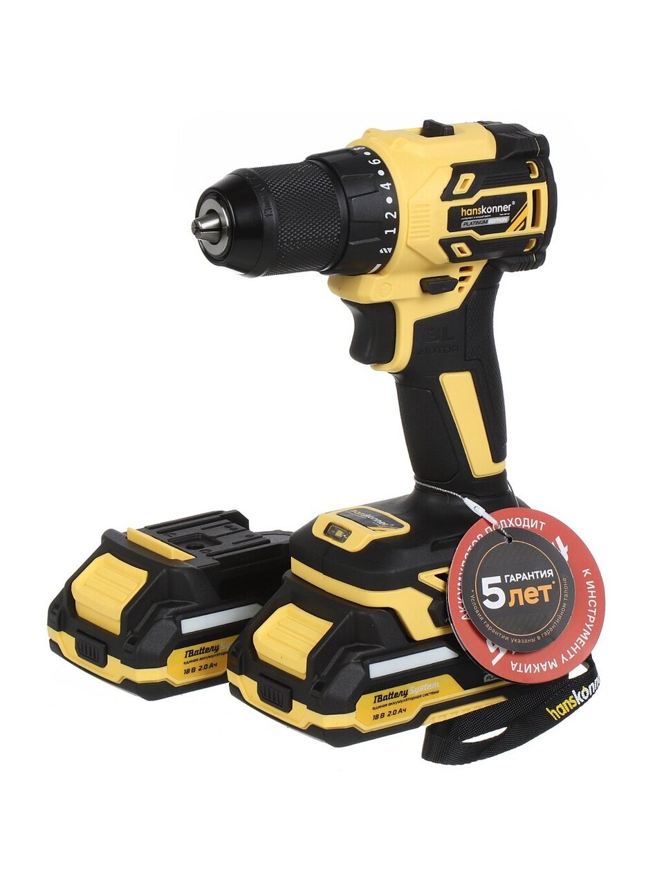 Дрель-шуруповерт аккумуляторный Hanskonner HCD2065C – это высококлассный инструмент, который станет надежным помощником в любых строительных и ремонтных работах. Этот профессиональный инструмент, оснащенный современным бесщеточным двигателем, обеспечивает надежность и долговечность, снижая износ и увеличивая срок службы устройства. Благодаря напряжению аккумулятора 18 В и двум батареям емкостью 2.0 Ач, дрель-шуруповерт гарантирует длительную и эффективную работу без необходимости частой подзарядки.