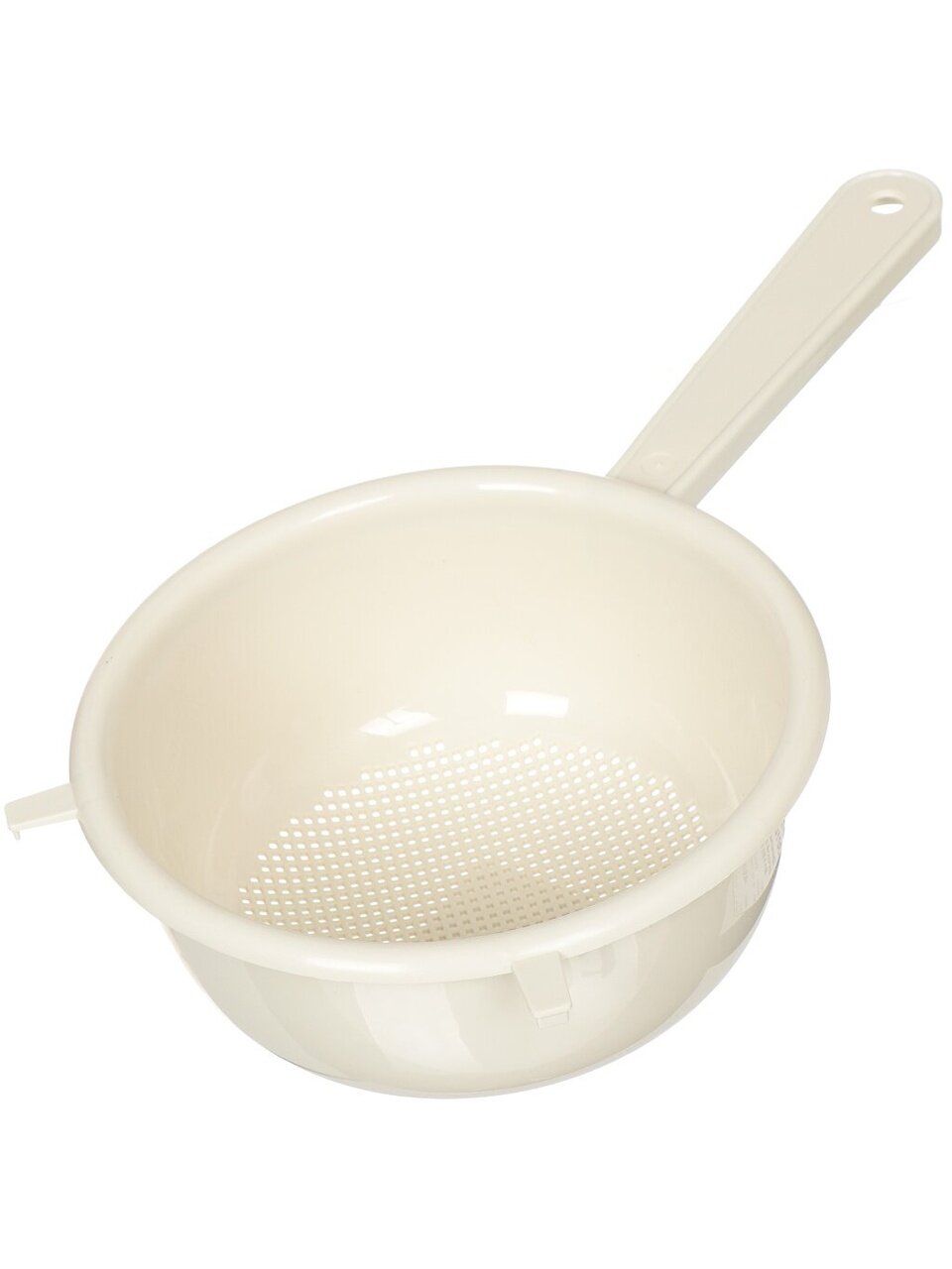 Пластиковый дуршлаг предназначен для слива жидкости при приготовлении различных продуктов, а также для промывания ягод, фруктов, овощей, зелени. Изделие имеет удобную длинную ручку с выемкой для пальца, что позволяет удерживать дуршлаг на весу без особых усилий. Небольшие ножки на дне дуршлага придают ему устойчивость на поверхности, а специальный выступ позволяет зафиксировать дуршлаг на кастрюле или чаше для слива остатков воды.