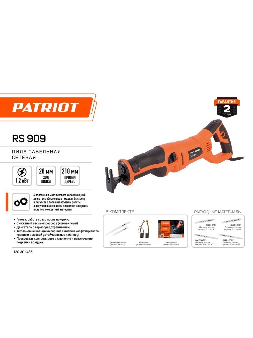 Patriot RS 909 выделяется среди аналогов своей быстрой системой замены пильных полотен, что существенно экономит время и облегчает рабочий процесс. Эта модель станет незаменимым помощником для специалистов в различных отраслях, связанных со строительством, техническим обслуживанием и обработкой древесины.