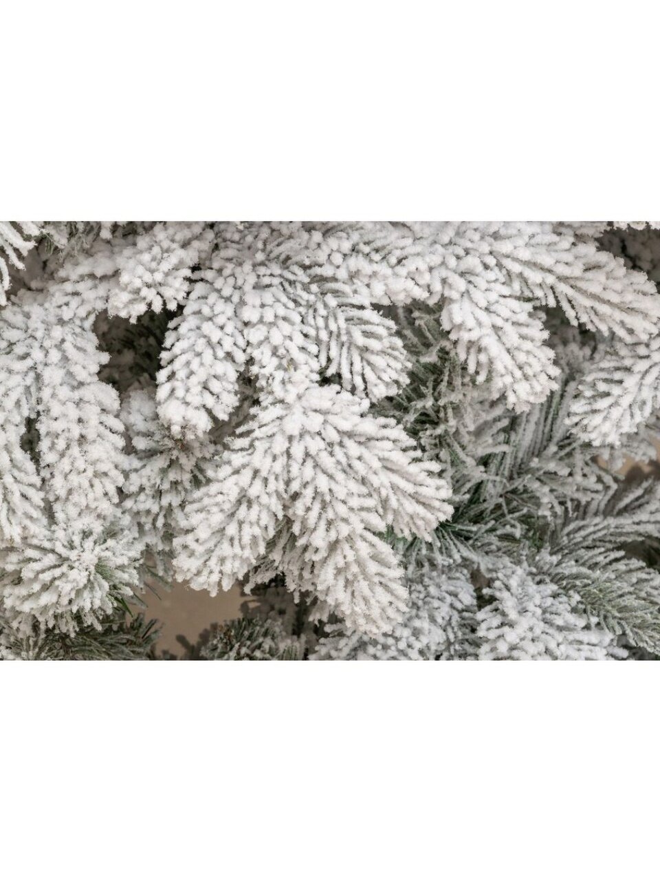 - Максимально реалистичный вид — хвоя из литого полимера и ПВХ, плотная заснеженность, эффект настоящей ели.