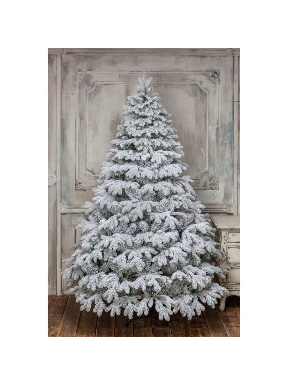 Елка напольная 240 см Камчатская заснеженная — эффект настоящей зимы в вашем доме: литая хвоя, 1112 веток, устойчивая подставка, сборка за 15 минут.