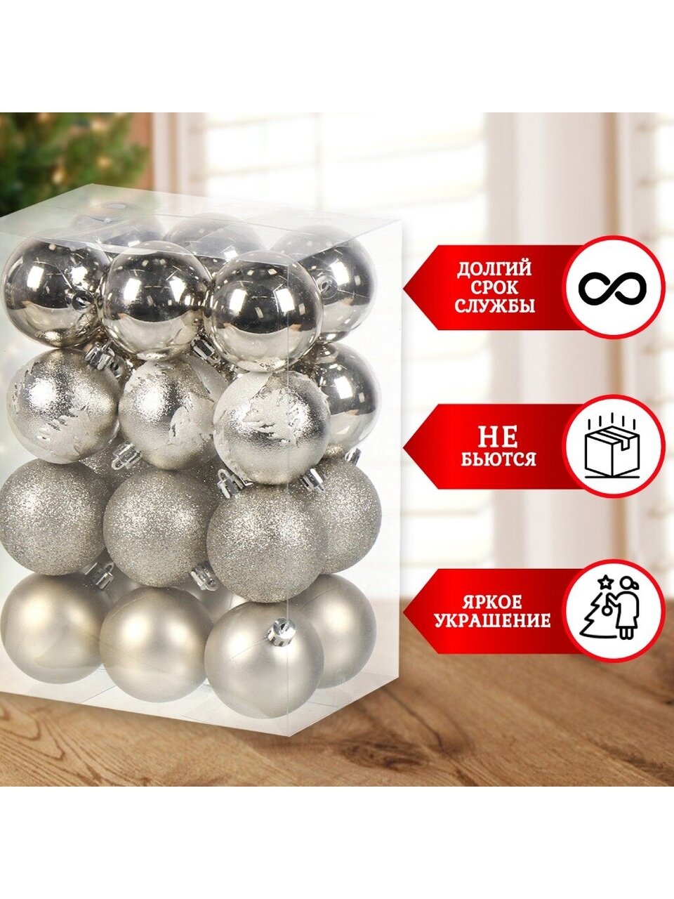 Оформите заказ на набор елочных шаров 24 шт по выгодной цене — получите безопасные, стильные украшения с доставкой. Гарантия качества и быстрая отправка!