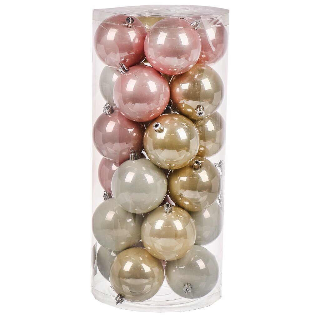 В комплекте 24 шара, каждый диаметром 8 см, покрытие — блестящее, цвет — микс.
