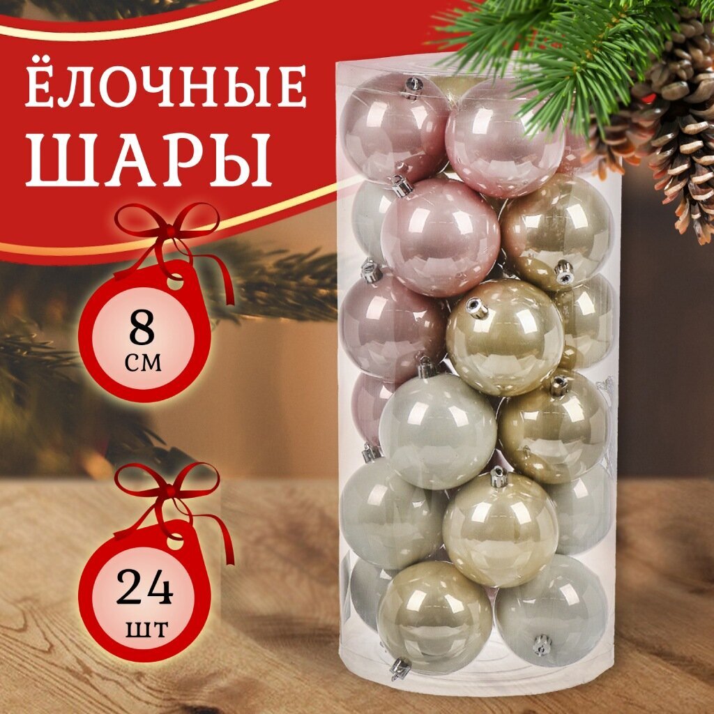 - Универсальный размер 8 см и комплект из 24 штук — оптимально для украшения как уличной, так и домашней елки