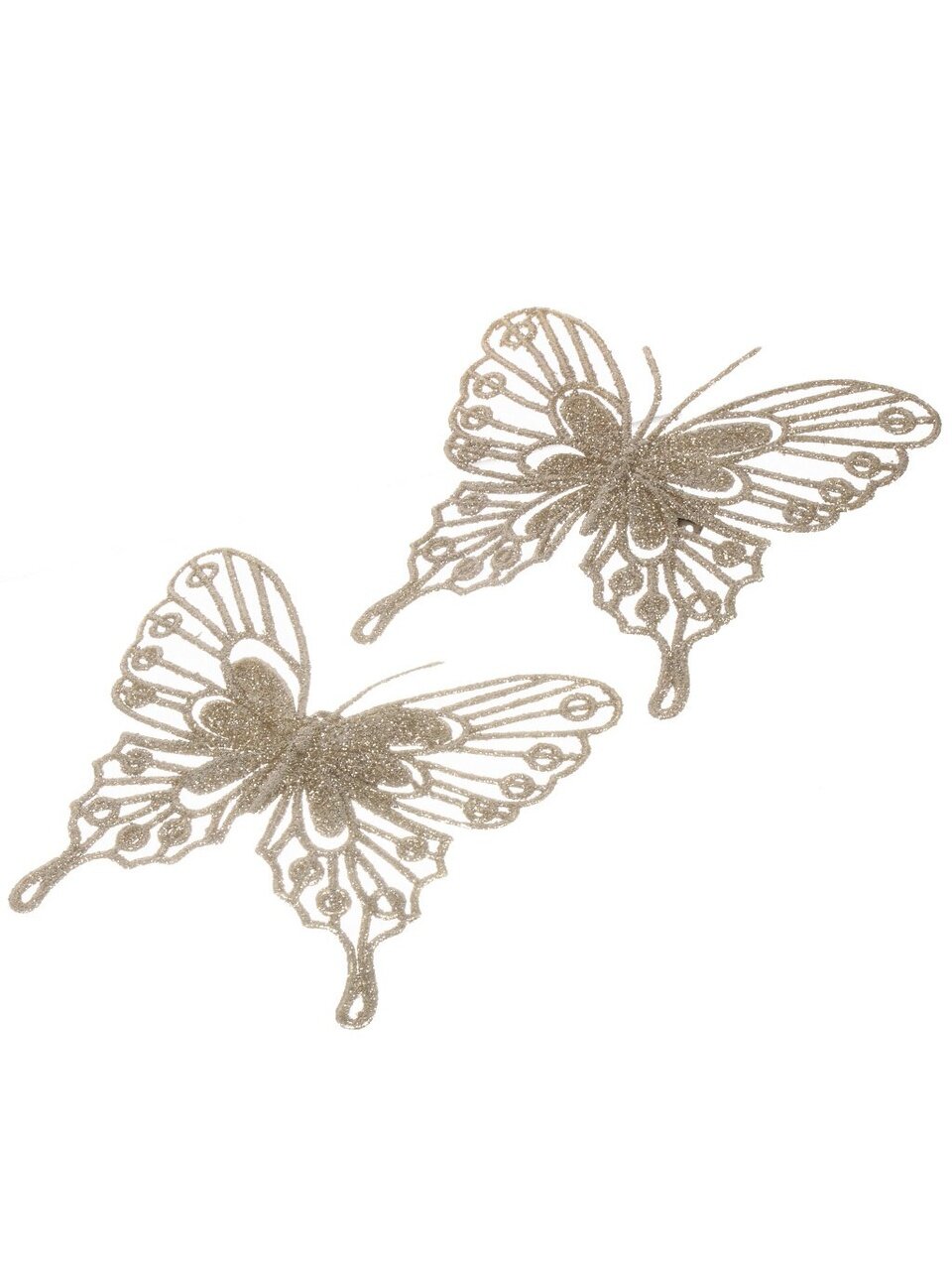 Эффектный набор ёлочных украшений Бабочка 2 шт — золотой блеск и прочность, идеальный выбор для стильного декора дома или подарка к Новому году