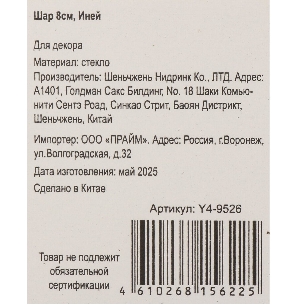 Оформите заказ на шар стекло 8 см «Иней» — получите стильный декор с быстрой доставкой и гарантией подлинности. Успейте купить недорого для дома или в подарок!