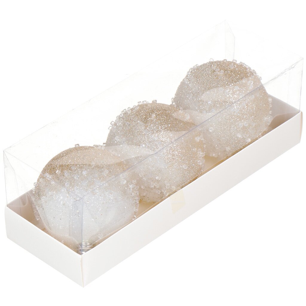 Елочные шары 3 шт, шампань, 8 см — безопасный декор для дома и улицы: небьющийся пластик, модный цвет, удобный набор для стильного праздника без лишних затрат.