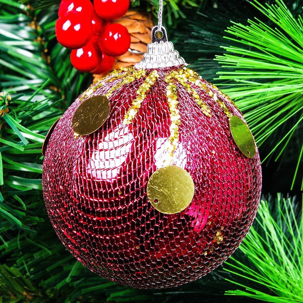 - Безопасный прочный пластик, диаметр 8 см — оптимальный размер для стандартной, уличной или офисной ёлки