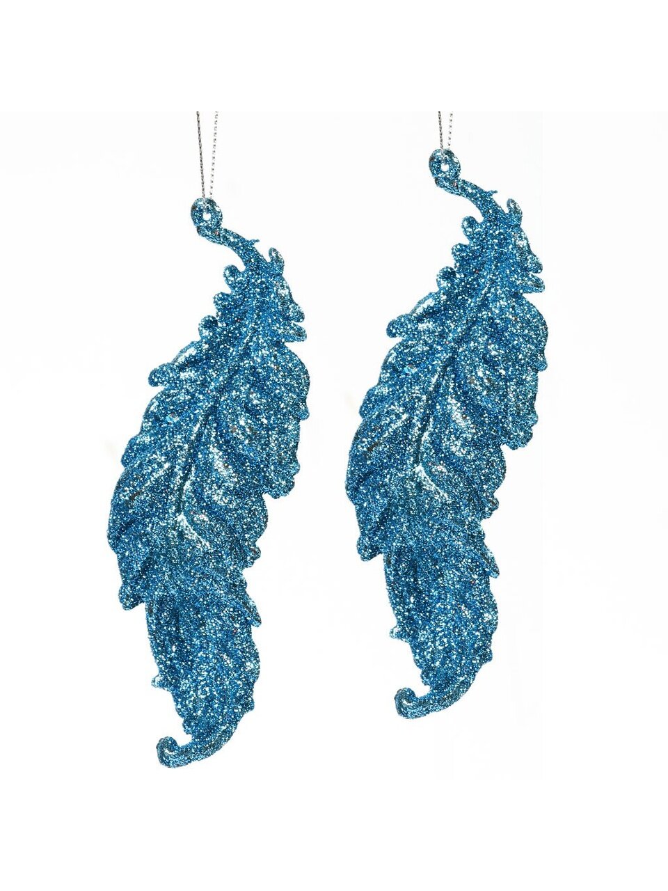 В комплекте 2 елочных пера голубого цвета с блестящим покрытием. Размер каждого — 13.5х14 см.