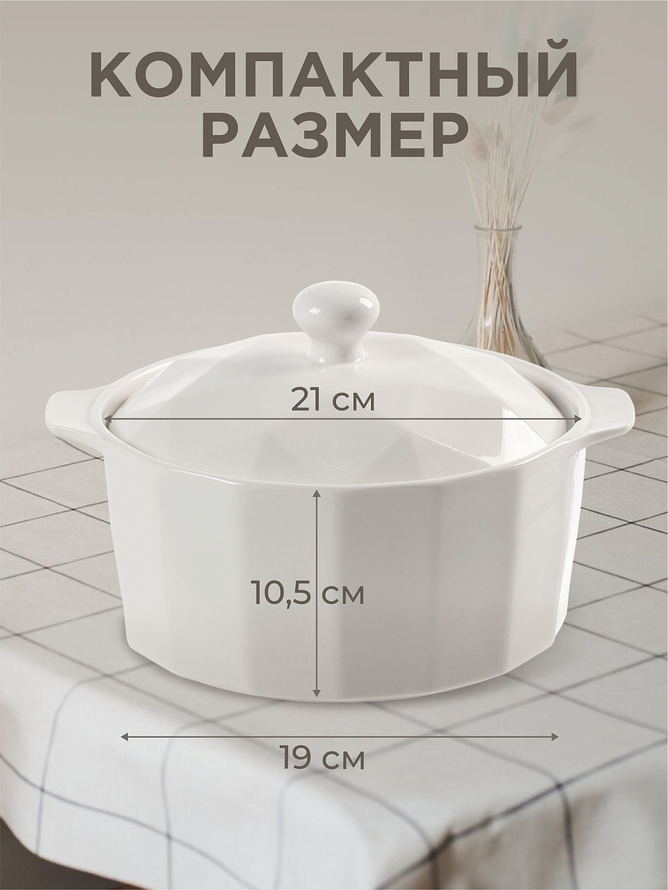 Керамическая кастрюля для запекания 1.9 л с крышкой: идеальный выбор для здорового приготовления блюд в духовке и микроволновке. Безопасно, стильно, удобно.