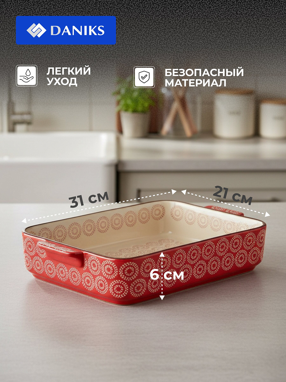 Форма для запекания из керамики 31х21 см: эффектная подача, равномерное пропекание, универсальность для домашней кухни и подарка.