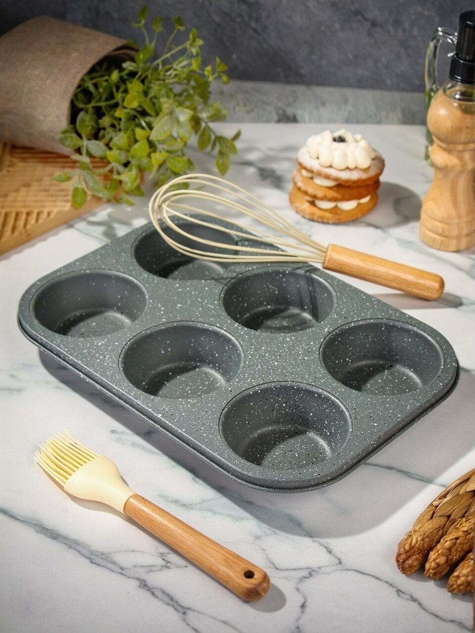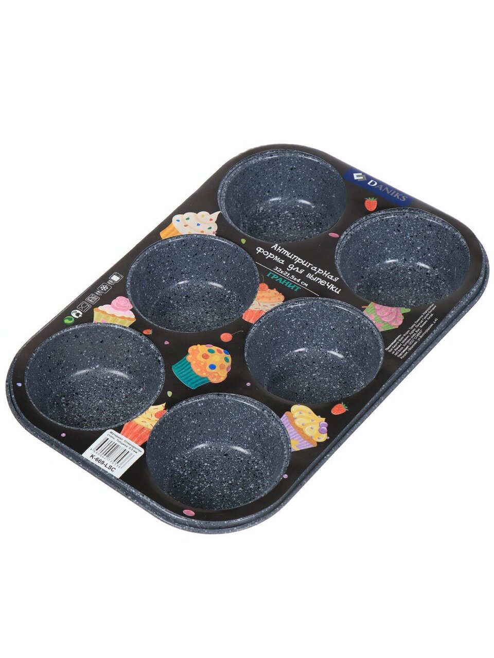 Форма для запекания Daniks Гранит 21.5х32 см: антипригарная сталь, 6 ячеек, идеальна для кексов и маффинов дома и на даче.