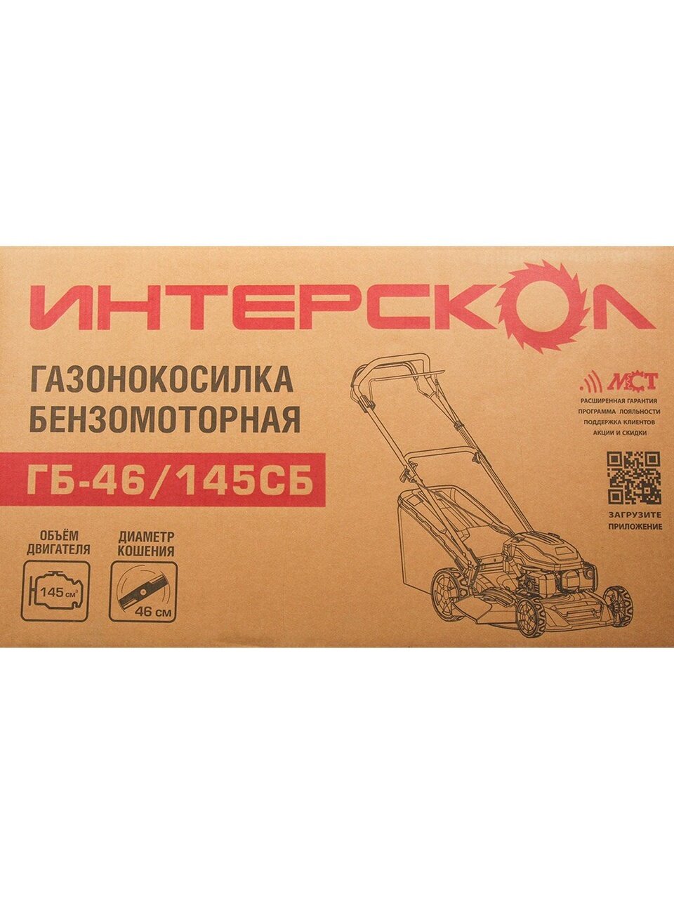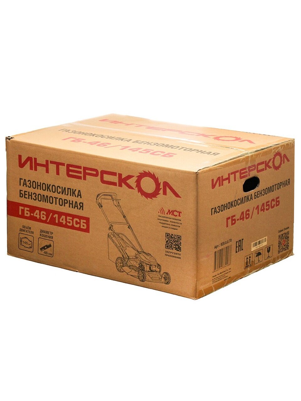 Газонокосилка бензиновая, 145 куб.см, Интерскол, ГБ-46/145СБ, 46 см, 60 л, 25-75 мм, 3.53 л.с., 2600 Вт, 3000 об/мин, 928.0.0