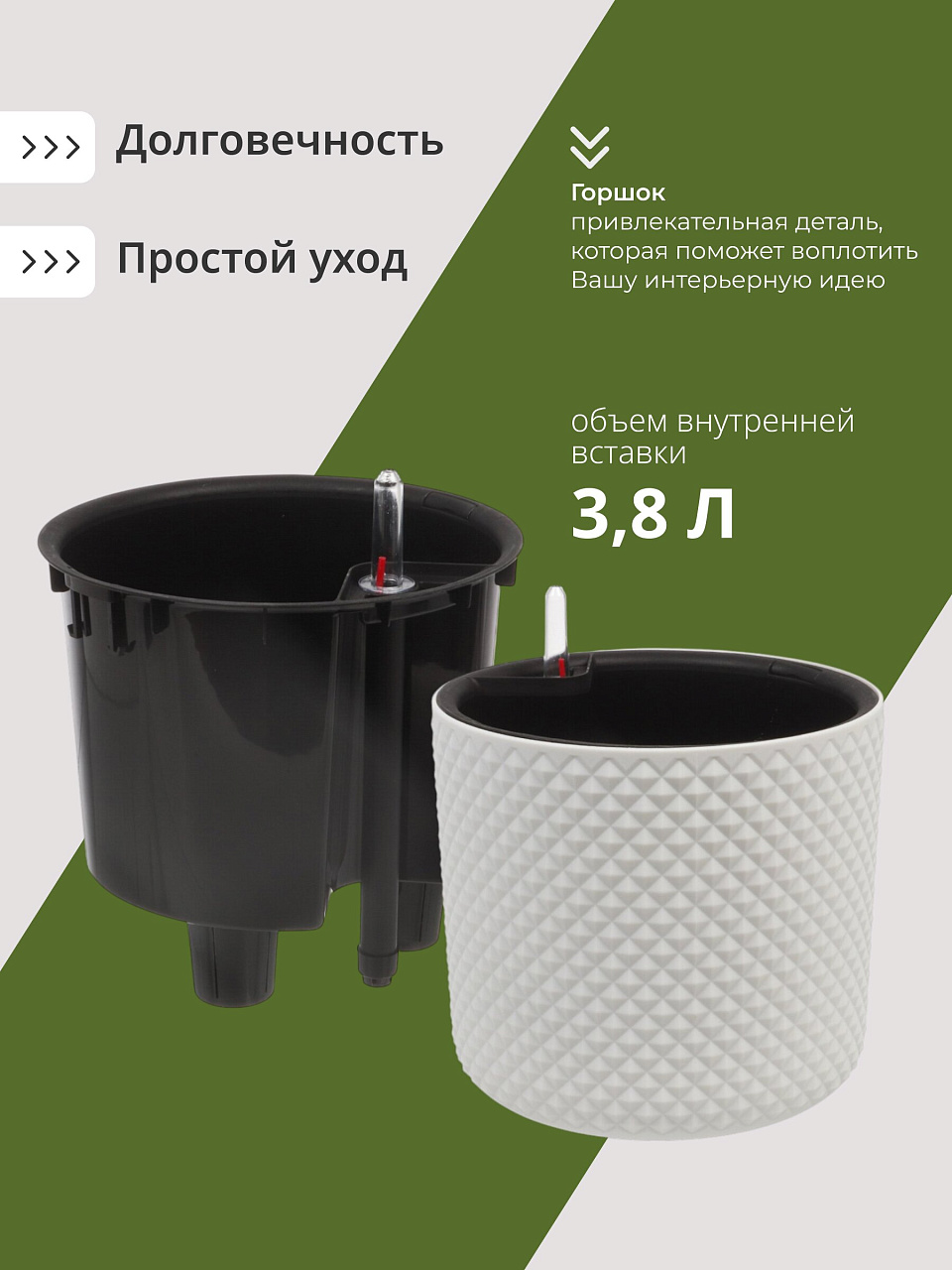 Вы можете приобрести «Кашпо пластик, 6.2 л, 22х22х20 см, автополив, со вставкой, белое, Idea, Фасет, М 3237» и другие товары в нашем интернет-магазине в Нижнем Новгороде по низким ценам и с бесплатным самовывозом.