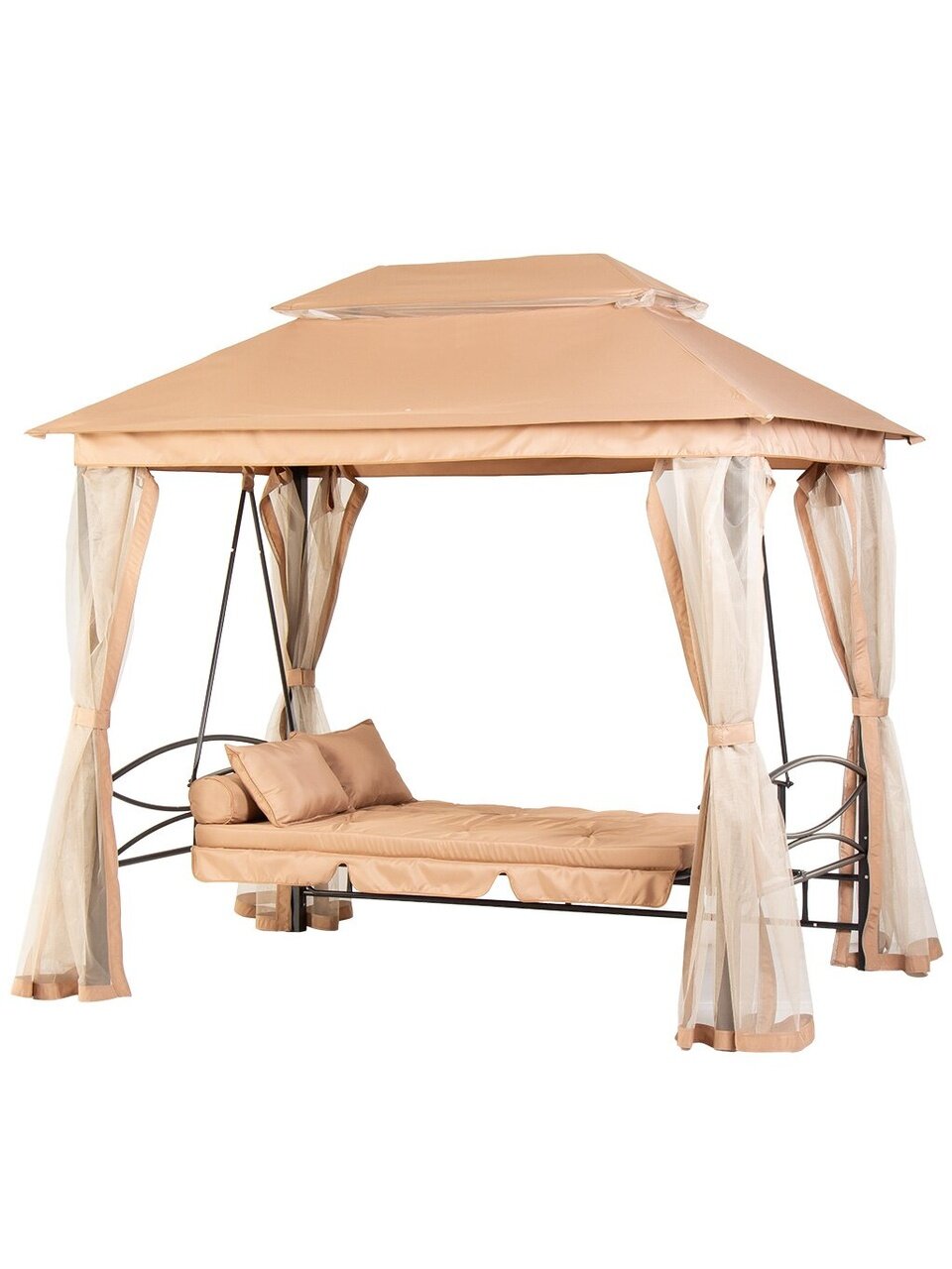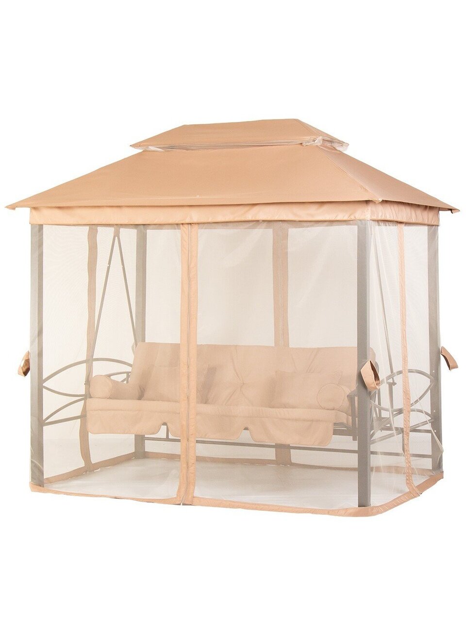 Конструкция качелей выполнена в формате беседки-дивана, что позволяет использовать их не только для расслабленного качания, но и как стильный элемент садового интерьера. Прочные ножки обеспечивают устойчивость даже на неровной поверхности, а материалы подобраны с учетом эксплуатации на открытом воздухе. Благодаря комплекту аксессуаров отдых становится еще более приятным: мягкая подушка поддерживает спину, а москитная сетка гарантирует спокойствие даже в вечерние часы.