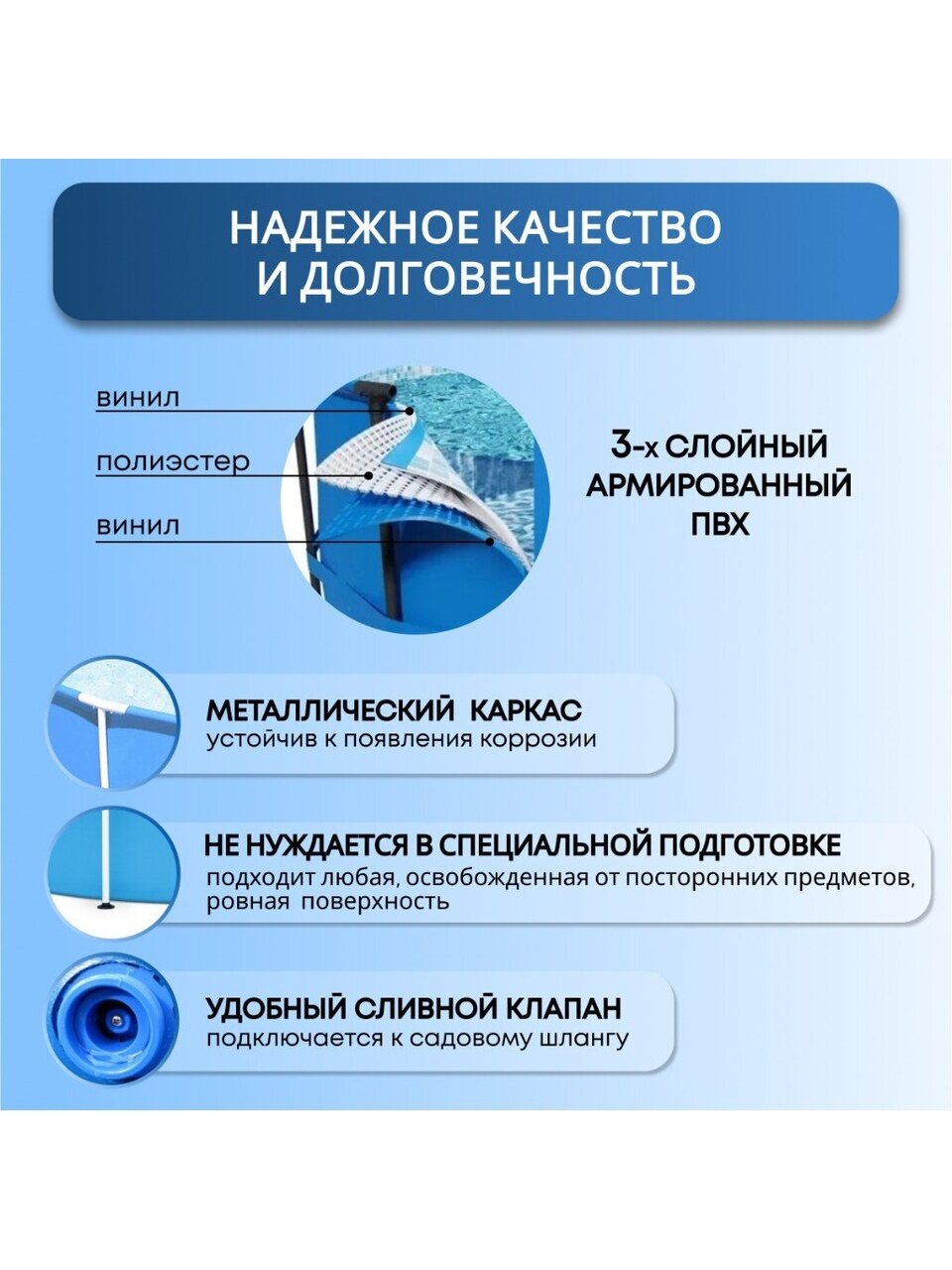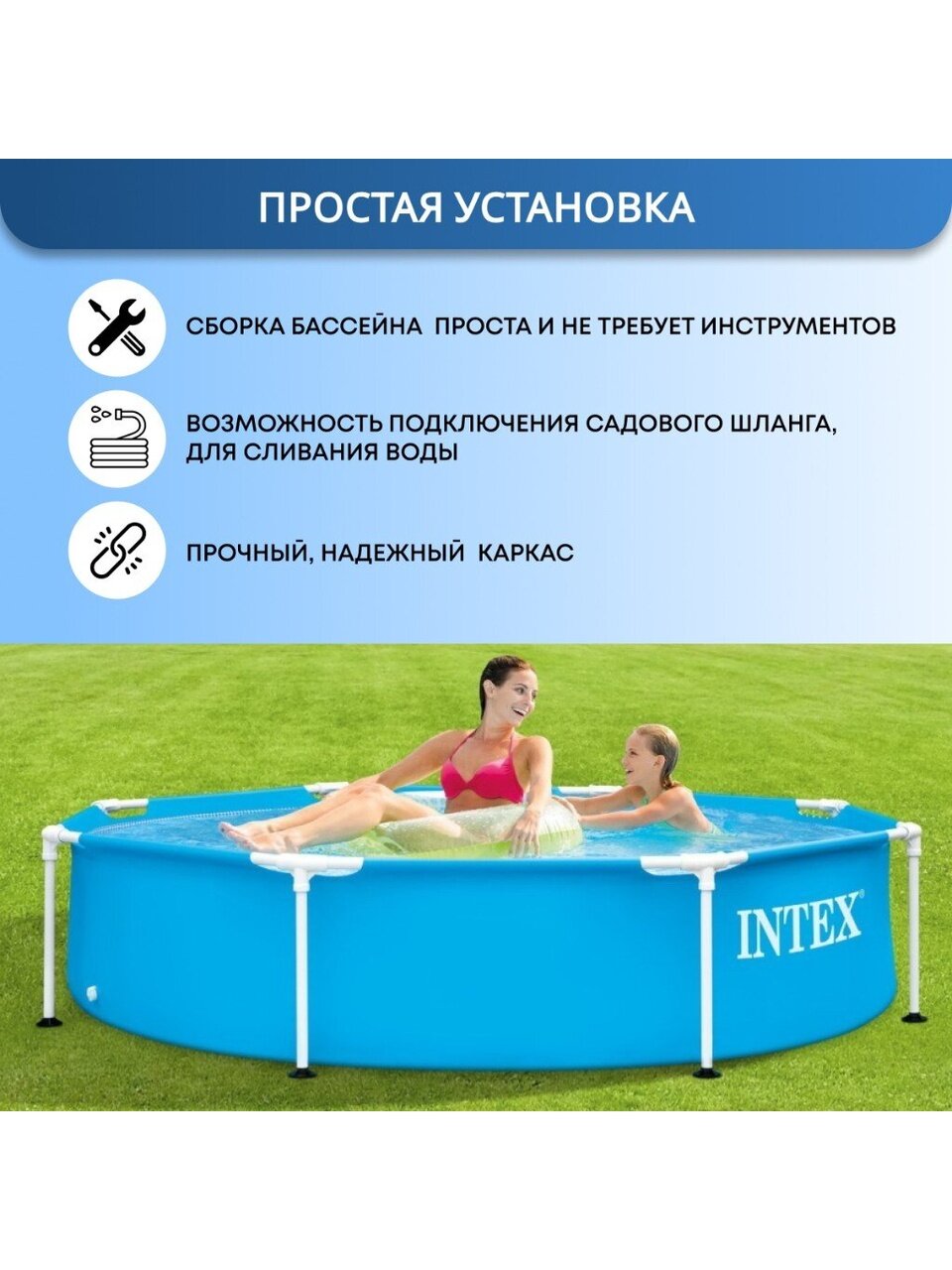 Синий цвет бассейна идеально вписывается в любой садовый или дачный интерьер, создавая атмосферу уюта и комфорта. Бренд Intex известен своим качеством и надежностью, что делает этот каркасный бассейн отличным выбором для всей семьи. Сделайте шаг навстречу летнему отдыху и подарите себе и своим близким незабываемые моменты на свежем воздухе!