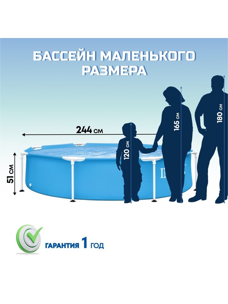 Ищете идеальное решение для летнего отдыха на даче? Каркасный бассейн Intex 244х51 см, модель Metal Frame, станет отличным выбором для тех, кто ценит комфорт и простоту. Этот бассейн обеспечивает освежающее удовольствие в жаркие дни и подходит для всей семьи. Установите его на даче и наслаждайтесь прекрасными моментами у воды.