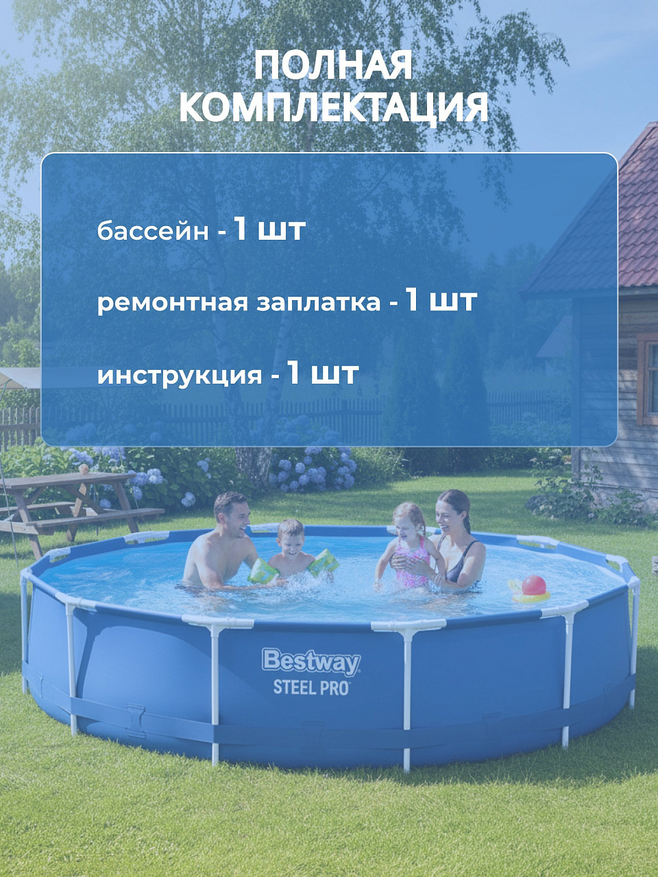 - Оптимальный размер: диаметр 366 см и глубина 76 см для всей семьи, быстрый монтаж за 20 минут