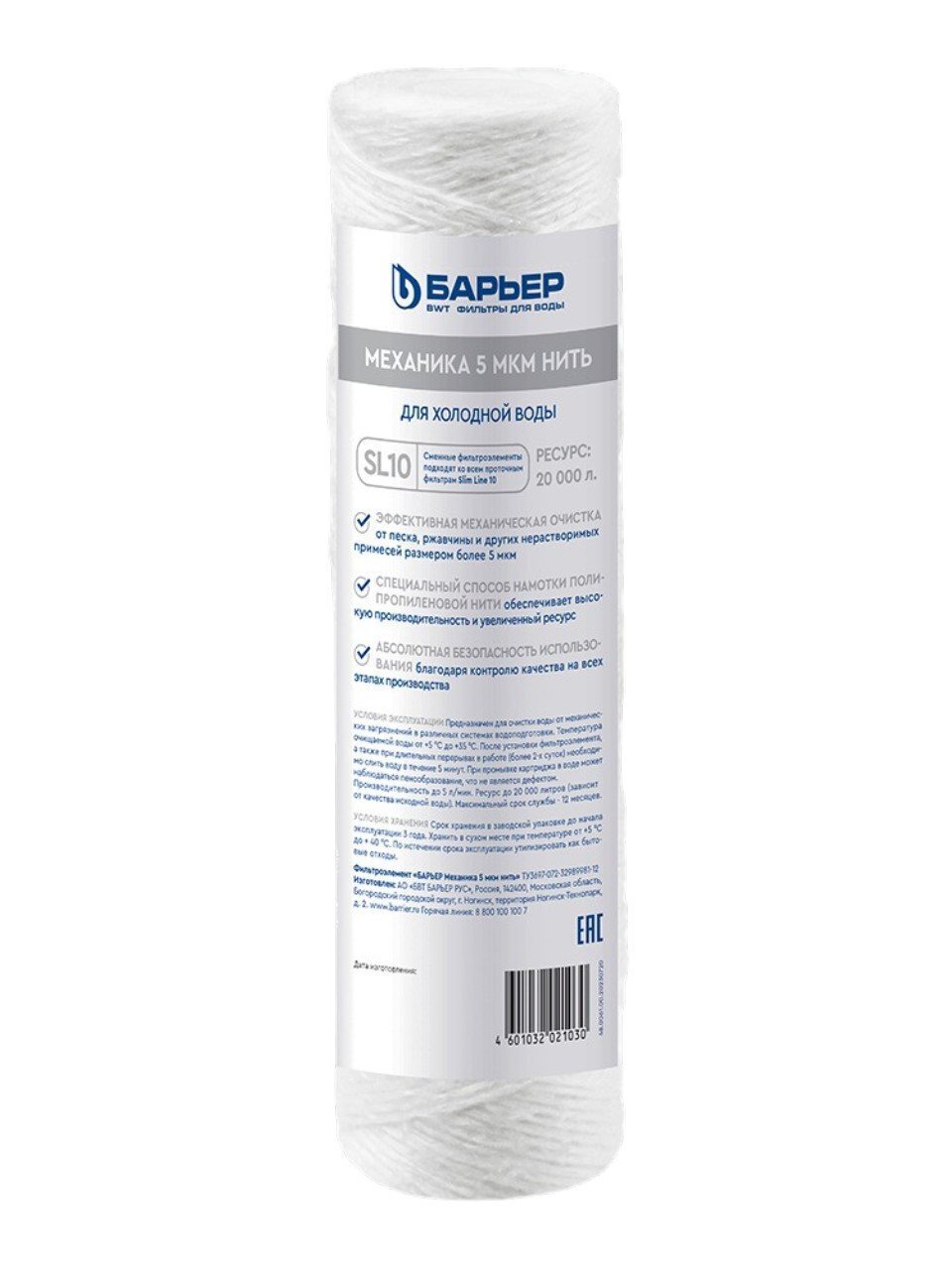 Сменный картридж Барьер Механика Нить 5 мкм: надежная защита от песка и ржавчины. Ресурс 20 000 литров для чистой воды в вашем доме.