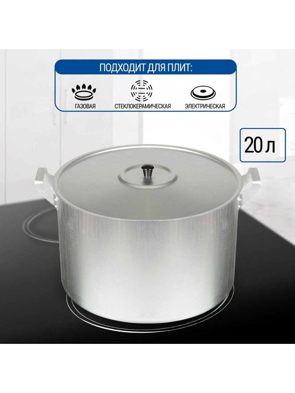 Кастрюля алюминиевая Scovo 20 л: идеальное решение для больших семей и дачи — лёгкая, вместительная, подходит для газовых и электрических плит.
