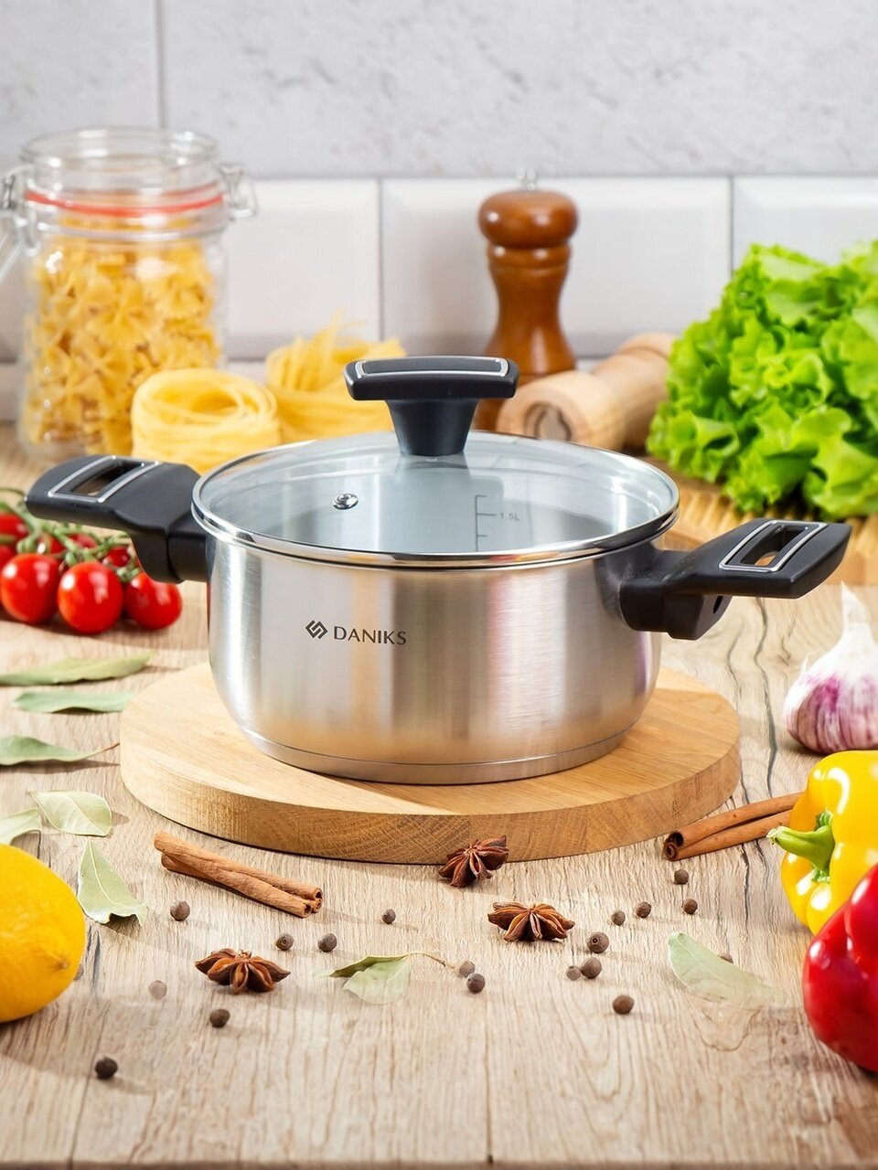 Кастрюля Daniks Айленд 2.2 л из нержавеющей стали с капсульным дном и стеклянной крышкой — идеальное решение для индукционных плит и ежедневной готовки без хлопот.