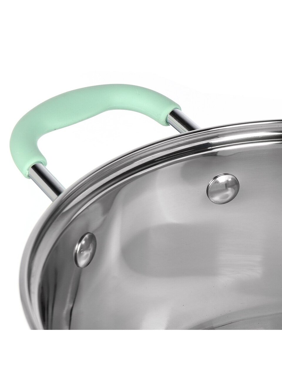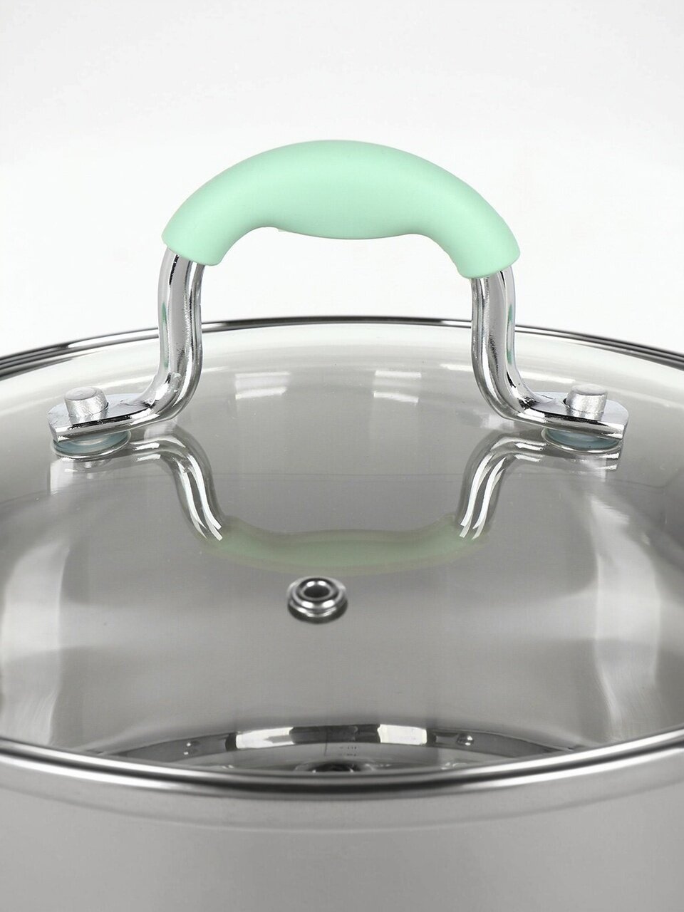 Вы можете приобрести «Кастрюля нержавеющая сталь, 2.5 л, крышка стекло, силиконовые ручки мятные, Daniks, Гринери, SD-23-18-2, индукция» и другие товары в нашем интернет-магазине в Железногорске по низким ценам и с бесплатным самовывозом.