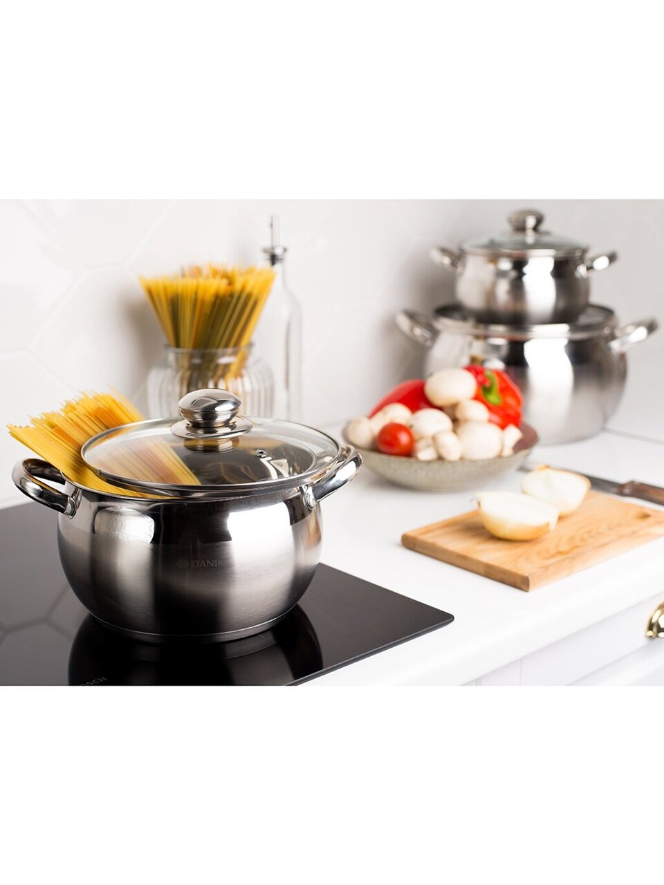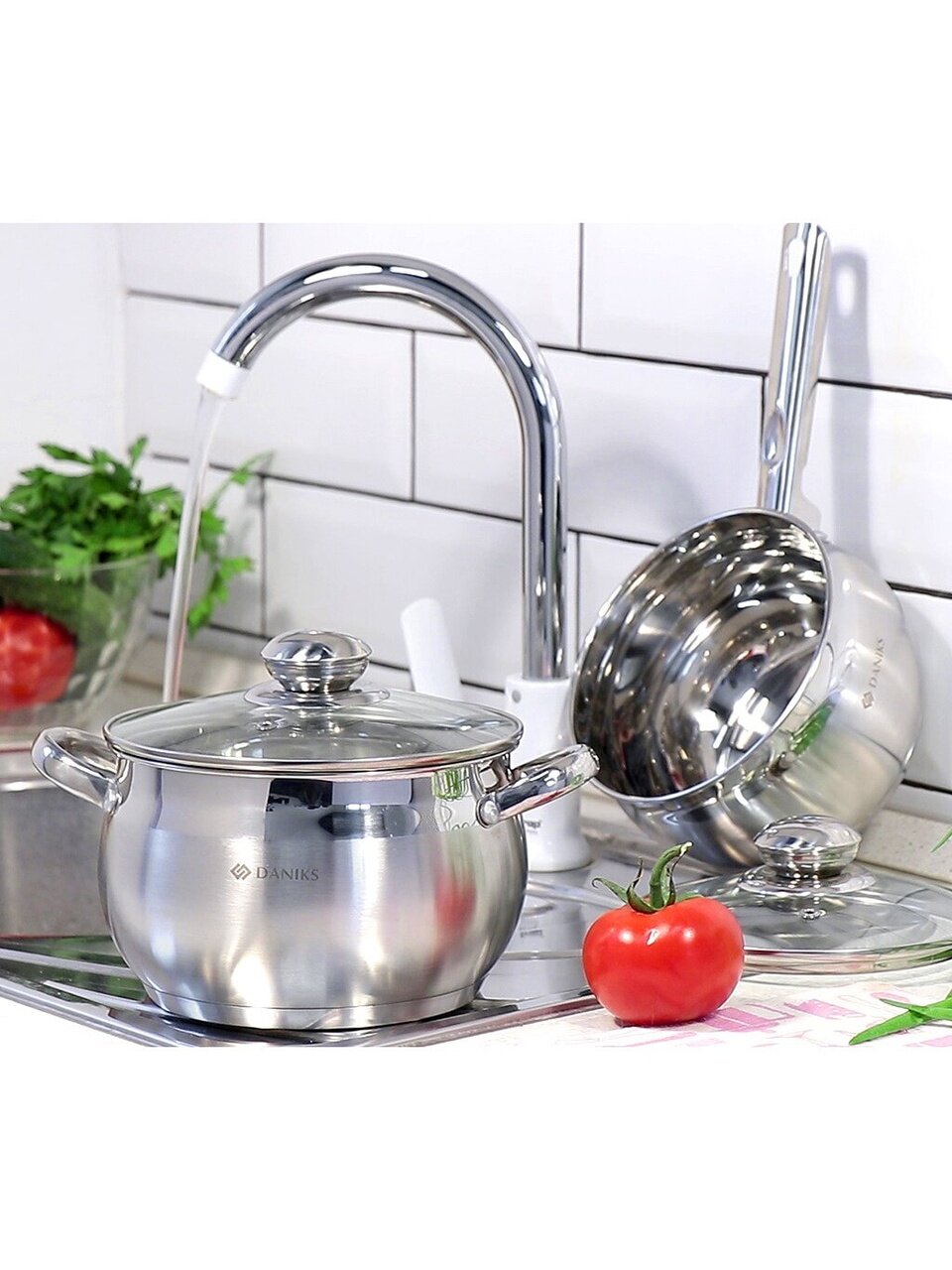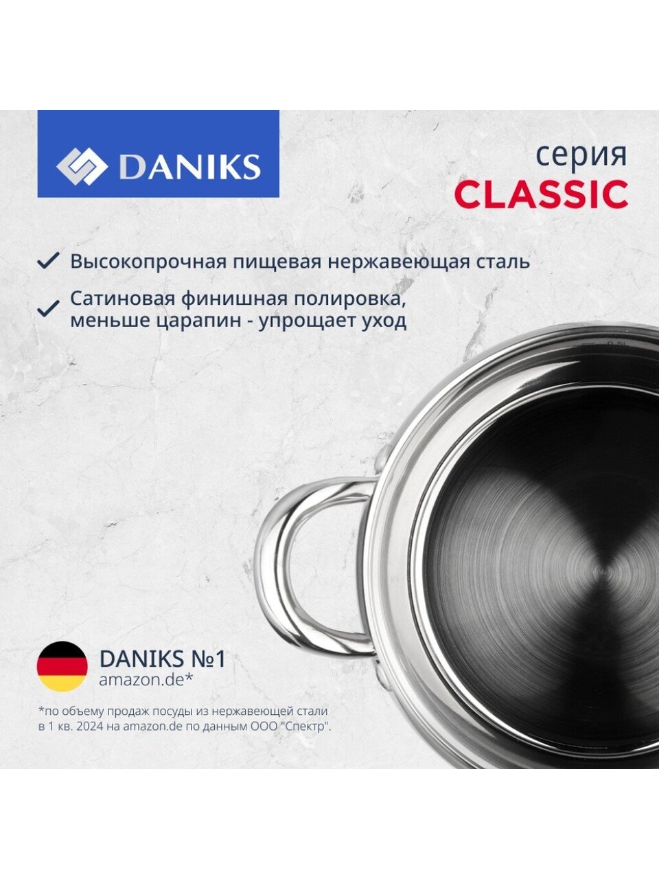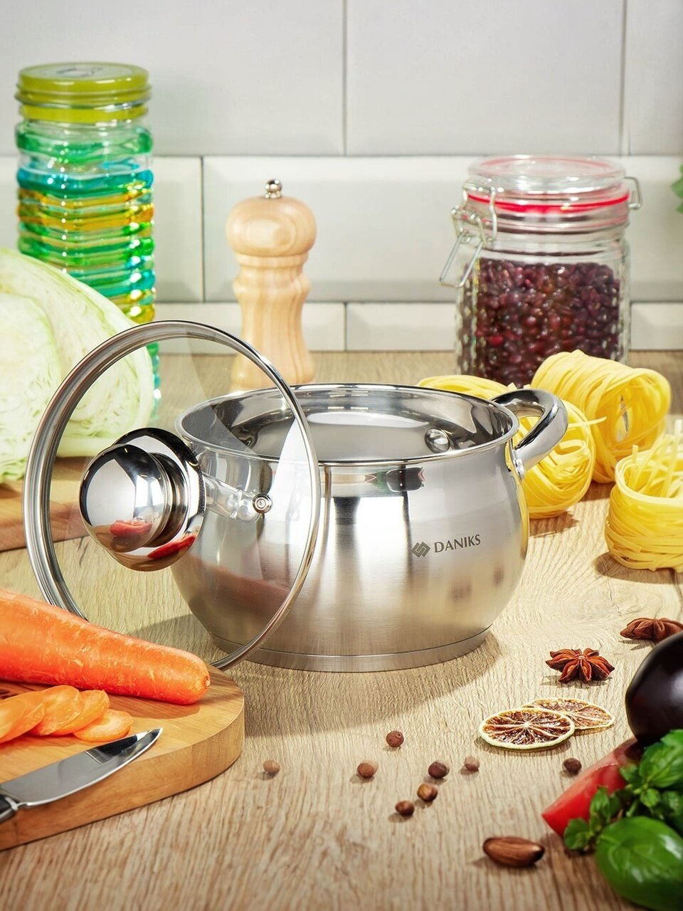 Кастрюля из нержавеющей стали Daniks 1.9 л с крышкой — универсальное решение для индукции, газа и стеклокерамики. Надёжность, мерная шкала, выгодная цена.