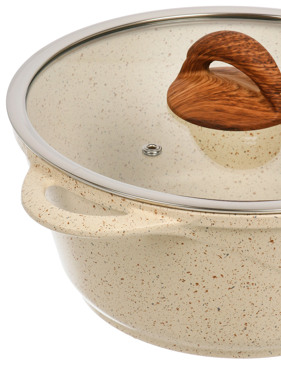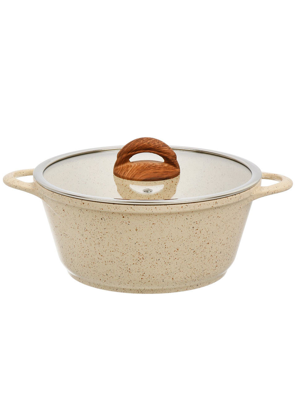 Кастрюля алюминиевая с мраморным антипригарным покрытием 3 л Гурман Estima — идеальный выбор для индукционных плит и быстрой готовки без пригорания. Прозрачная крышка, долговечность, стильный бежевый цвет.