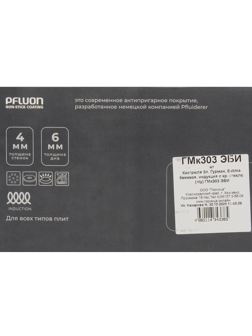 Вы можете приобрести «Кастрюля алюминий, антипригарное покрытие, 3 л, крышка стекло, Гурман, Estima, ГМк303 ЭБИ, бежевая, индукция» и другие товары в нашем интернет-магазине в Ярославле по низким ценам и с бесплатным самовывозом.