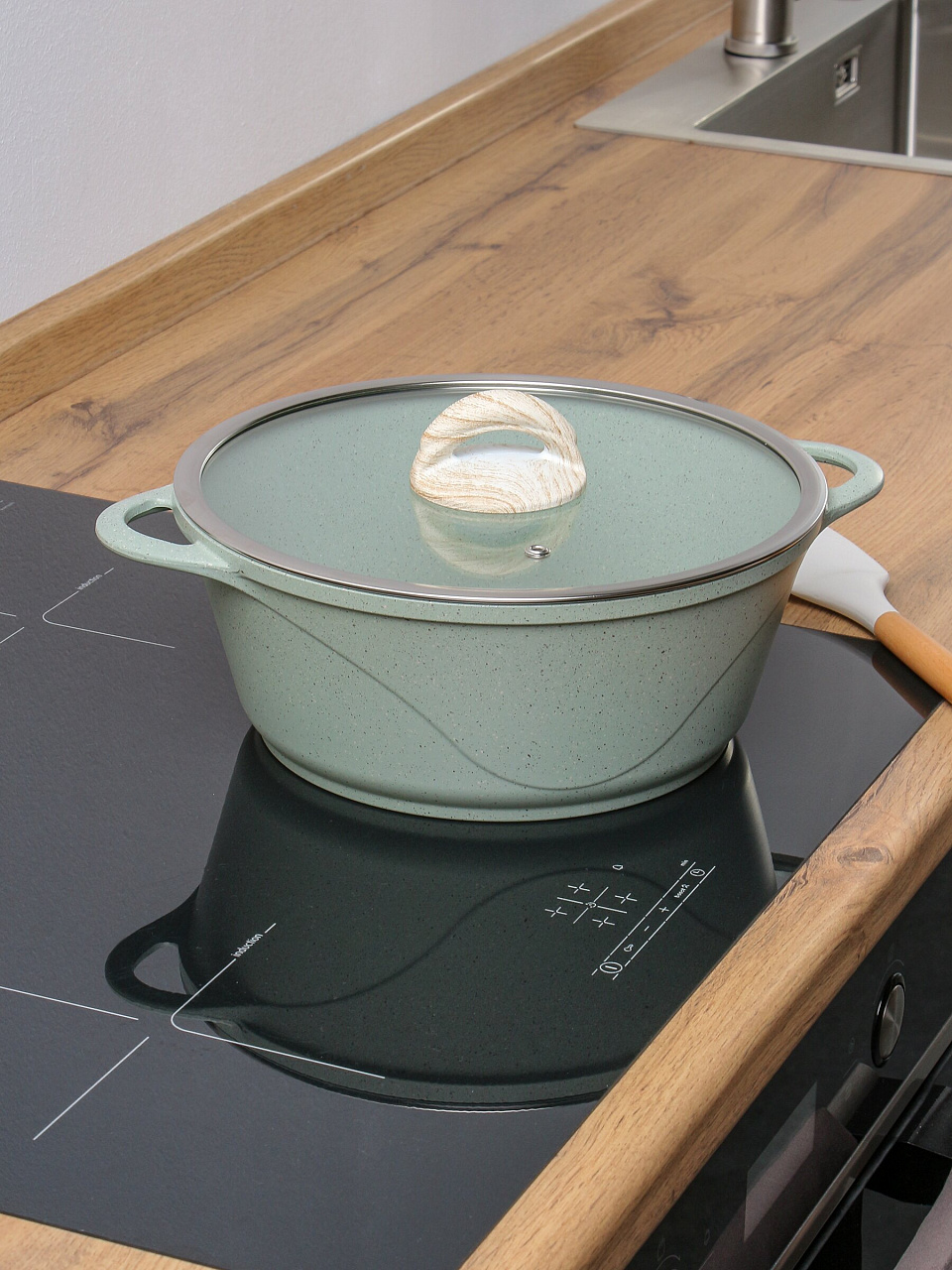 Чем отличается эта кастрюля от стандартных моделей? Прочное антипригарное покрытие типа «гранит» служит дольше обычных тефлоновых аналогов, а алюминиевый корпус гарантирует быстрый разогрев и экономию энергии. Вопросы «подходит ли для мытья в посудомоечной машине» и «можно ли использовать для супа и каши» решаются положительно — кастрюля полностью совместима с современными требованиями к удобству и безопасности. За счёт стильного мятного цвета и коллекционного дизайна Гурман Мята, кастрюля станет отличным подарком или эффектным элементом вашей кухни.