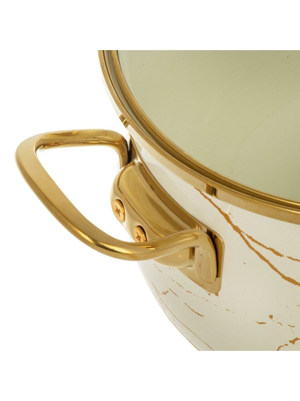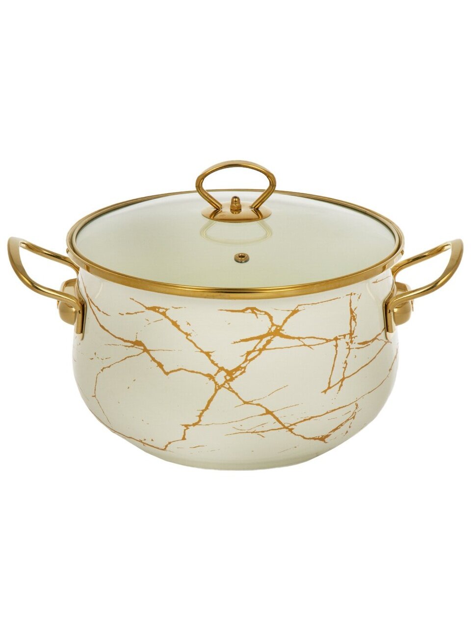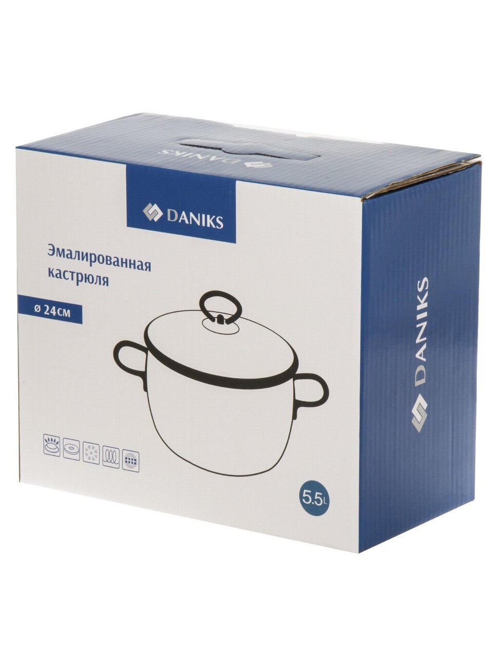 Кастрюля Daniks 5.5 л Белый мрамор — универсальная эмалированная сталь для индукции, стеклянная крышка, стиль и долговечность для кухни и дачи.