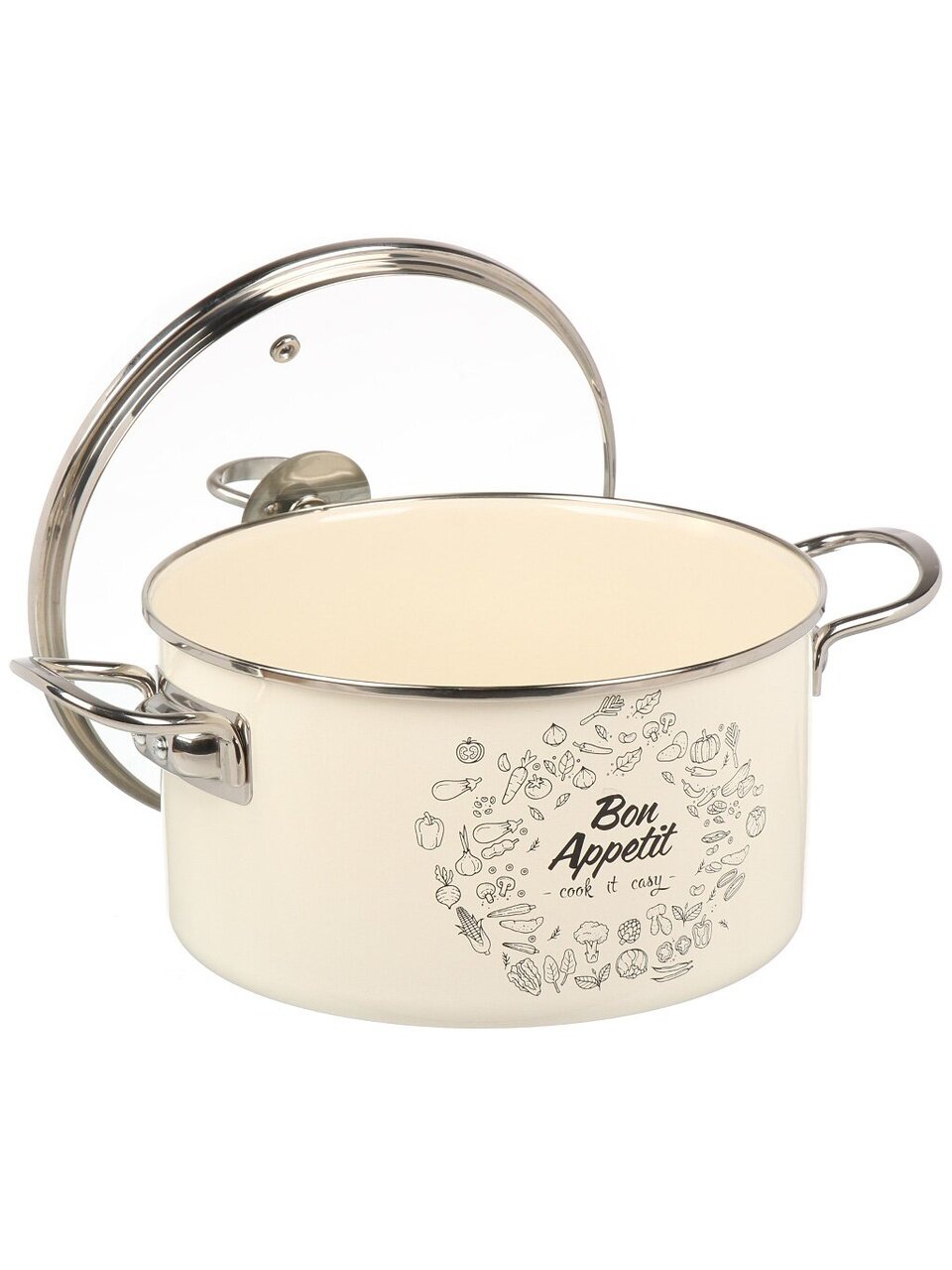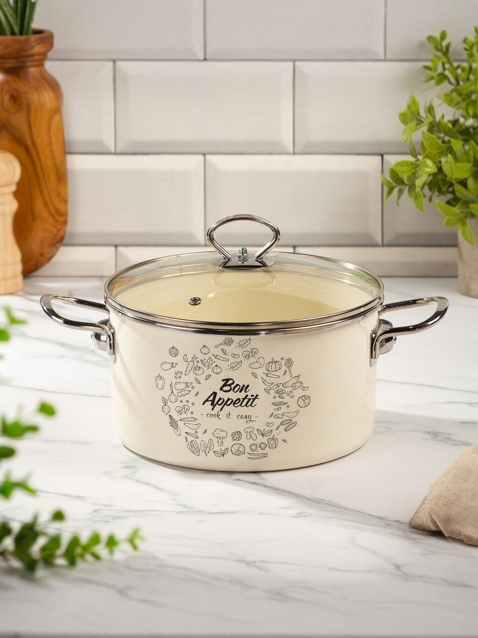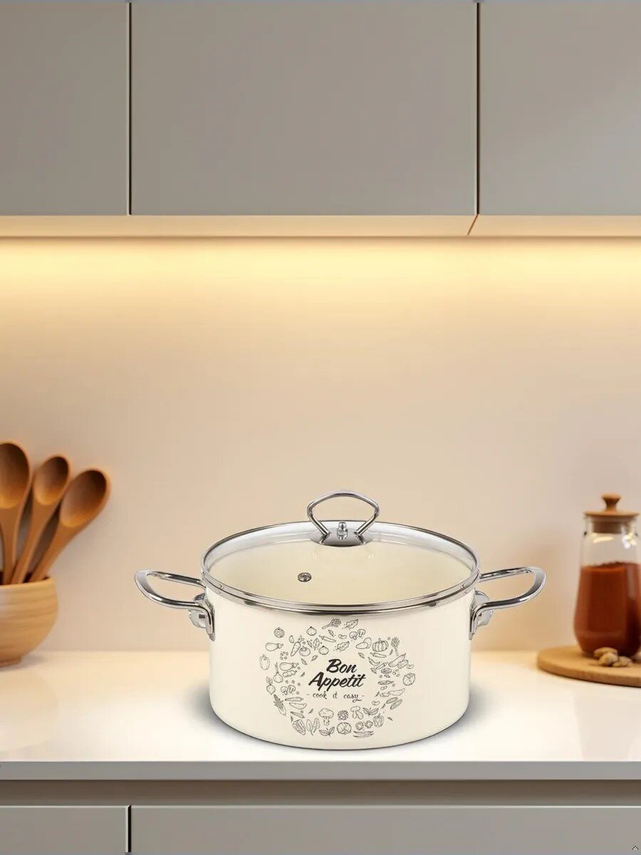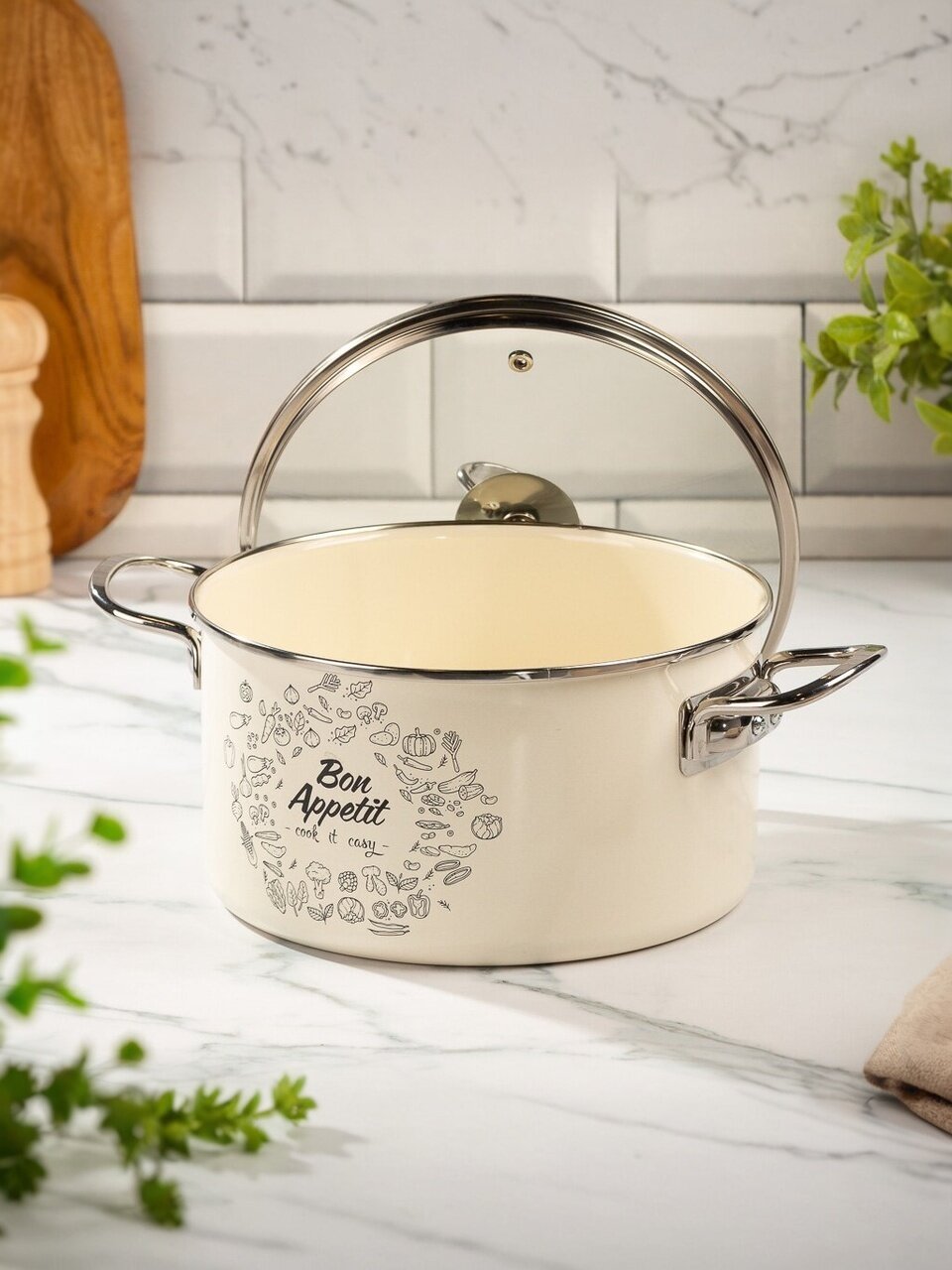 Эмалированная кастрюля Daniks Bon Appetit 4 л с крышкой — оптимальный выбор для индукции, дома и дачи: прочная, безопасная, универсальная.