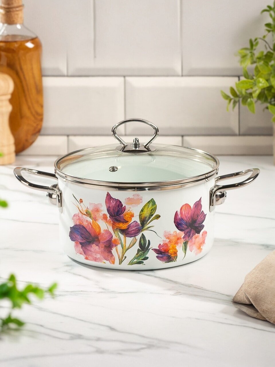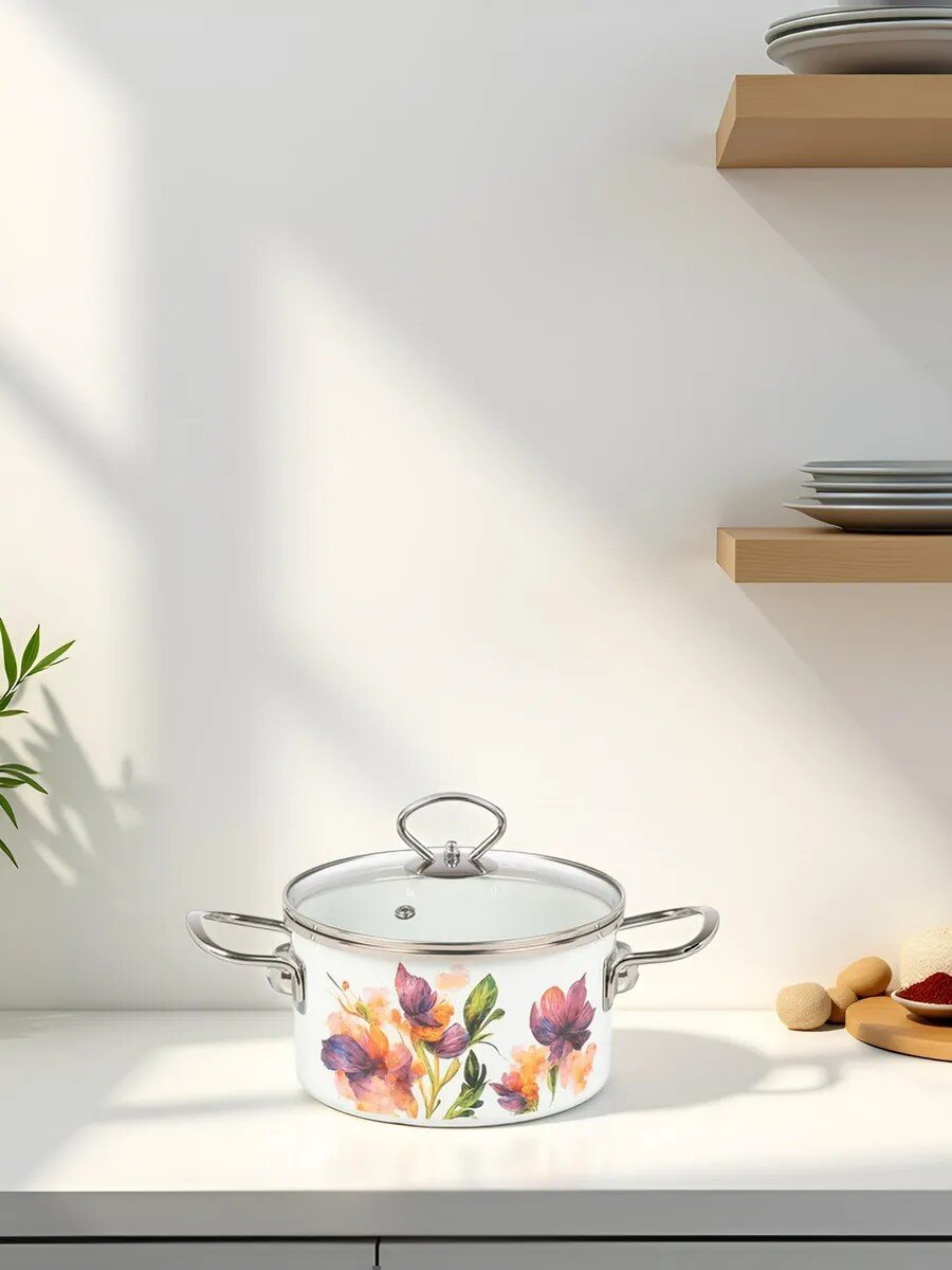 Эмалированная сталь, из которой изготовлен корпус кастрюли, обеспечивает равномерное распределение тепла и долговечность. Это означает, что еда готовится быстро и сохраняет все свои полезные свойства. Прозрачная стеклянная крышка позволяет следить за процессом приготовления, не поднимая ее, сохраняя тепло и аромат внутри кастрюли. Цилиндрическая форма кастрюли Daniks Iris не только эстетически привлекательна, но и практична, обеспечивая удобство в хранении и использовании.